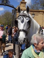We had about 90 minutes to kill so we took a lot of photos of horses being worked, storks nesting in the trees and the boys working in the harness shop. The school museum turned out to be a star attraction, compact but absolutely loaded with information. My only complaint was a complete lack of a guide or brochure. The history of the horse was so well covered, spanning the time period from its evolution in the ancient Americas (where it was judged to be food) to its spread to Asia (where it was judged to be useful for more than food) to its domestication and diversification into modern breeds. No photos were allowed, sadly. We left and made our way across the now crowded grounds to our seat in the show arena.