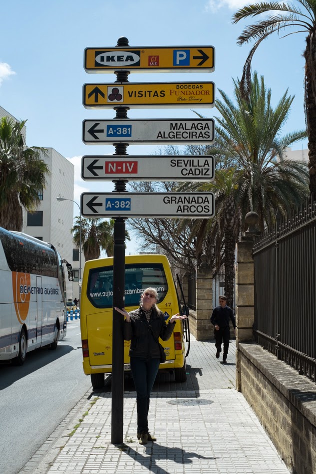 Now I had checked the weather forecast the day before and it had called for sun and mild temperatures so I was quite surprised to see the skies turning an ugly shade of gray as we neared our destination. Naturally, believing in the science of meteorology, I’d elected to leave the umbrellas at home, preferring not to bear the burden of the extra weight. My mind was already set on buying a cheap tourist umbrella when what was really going on became apparent – we were seeing the rise of the morning marine fog. Jerez is not far from the Atlantic and this was nothing more than a regular early spring day. By the time we arrived it was clear, cold and a bit windy.