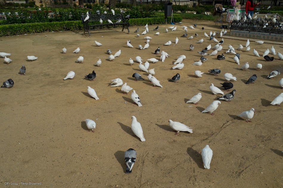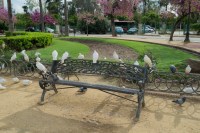 Two days ago when we walked out of the archeology museum I noted some white dots off in the gardens and made a mental note to return. Thinking that they were some sort of lily, we went back today in search of the spring gardens in the Maria Luisa Park. There were none, and the Calla Lilies turned out to be white pigeons sitting on the top of the park benches. So much for long range vision.