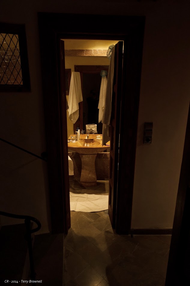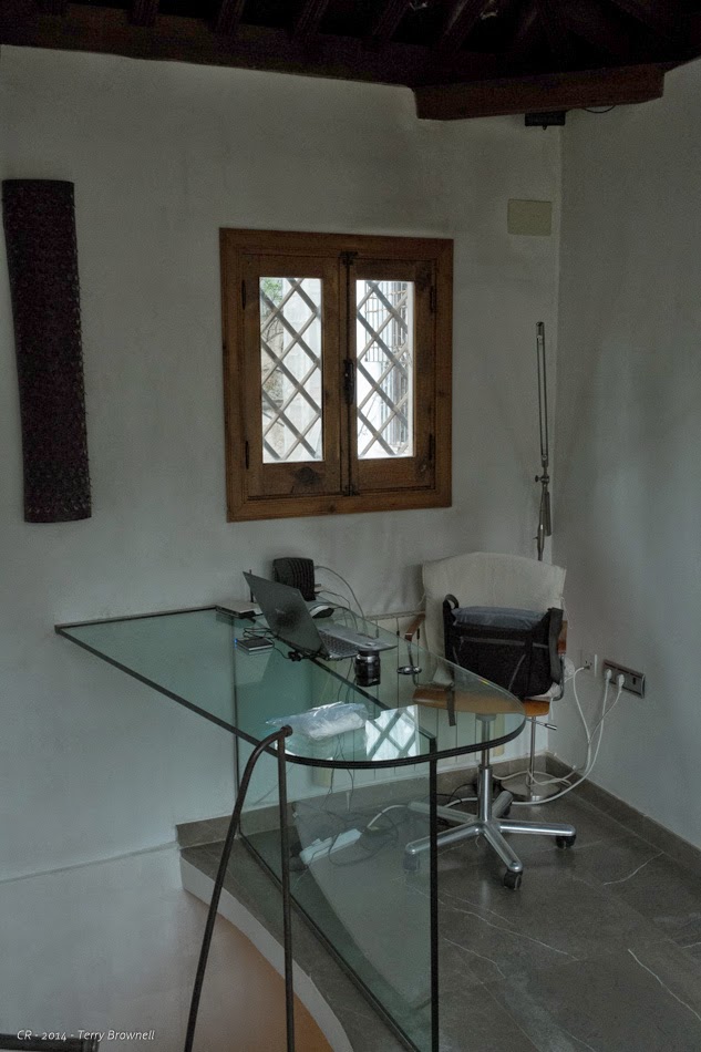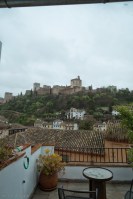 It’s an interesting apartment, and I knew when I rented it that it had 3 levels. What I thought though was that it had a ground level (check) a second level (check) and a third level that was a combination office/terrace (oops, wrong.) In reality, the bedroom is downstairs and the office/terrace is upstairs with the living space and kitchen being in the middle. Woe be unto he that forgets the computer power supply on level -1 when planning to write on level +1 because it means three floors of climbing on a narrow marble circular staircase. If we survive this place after a couple of glasses oftinto, it will be a miracle. The terrace though makes all the climbing worthwhile with a stunning view of the Alcazaba, the fort that protects the Alhambra.