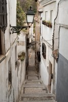 We drove up the main street, the Gran Via and took a quick left under an ancient city gate onto a steep narrow cobblestone lane that headed up into the hills. My first thought was that I was in Morocco as this place looked far more old and African than any other old town I have visited in Spain. The second thought was somehow I’d been transported back to 1965 because the streets were thronged with hippies, or rather what passes for a hippie in the 21st century. Dreadlocks, baggie clothes, back packs, the famous European Hippie Trail apparently lives on. Who knew?