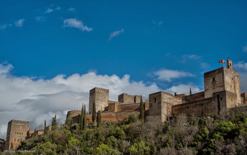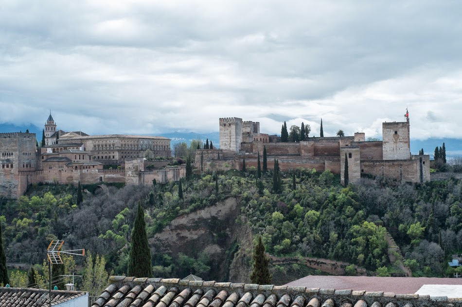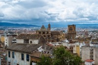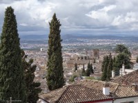 With the Alhambra out of the way, we were free to explore the rest of the town. Two days are recommended and judging from what remained on our list, that suggestion seemed about a half a day too long. The weather had changed a bit – it was clearly going to rain off and on but at least the heavy gray skies had broken up a bit. A nice flash of blue appeared across the valley and above the Alhambra, just enough time for a photo before it was obscured by a shower.