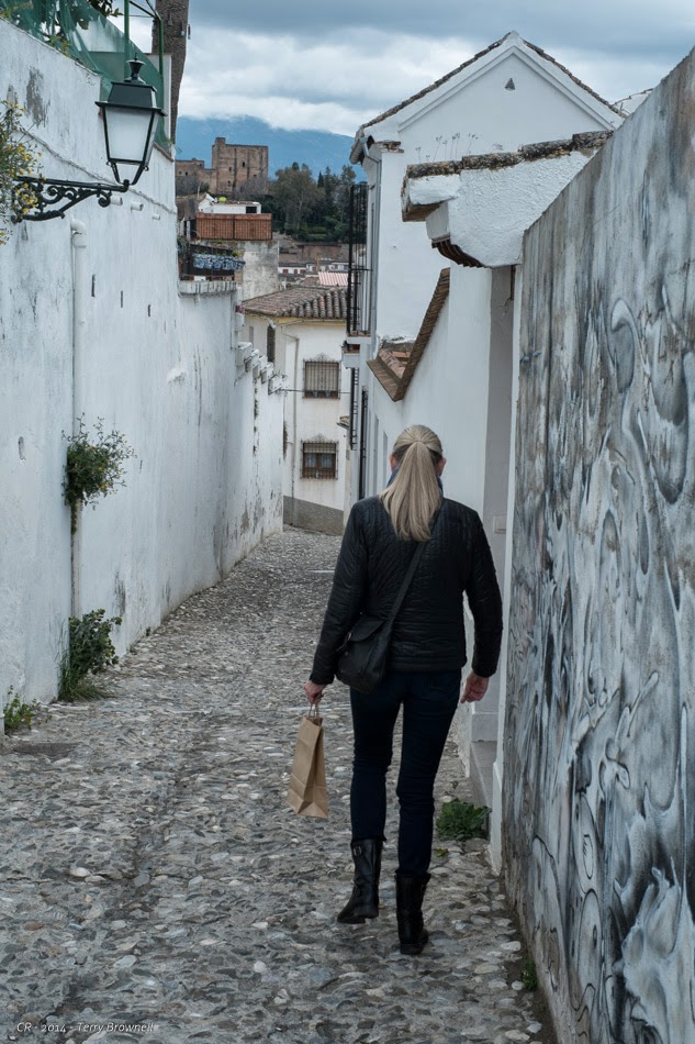 The one thing that had become apparent to us was that in spite of the perils of the staircases and the other faults of our apartment, we were lucky to be only two levels up the hill. The Albaicín is the ancient Arab quarter and supposedly one of the best remaining in Europe. Our two days of negotiating slick slanty cobblestone lanes had confirmed the authenticity as well as imparting a sense of just how little you’d want to leave your place if you lived up top. I suppose in a way that I was glad we were doing this now and not in 10 years when knees and legs would make this an even bigger challenge. We had a superb view and a place with a reasonable climb. A good combination considering that the apartment was rented blindly.