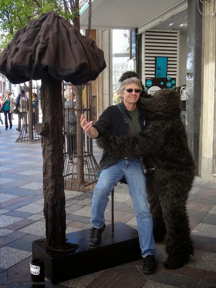 Puerta del Sol was mobbed and we couldn’t find the Kilómetro Cero plaque as I had hoped so we took off down Arenal stopping to pose with another street performer, this one dressed as a bear and seated in front of the Madrone tree, acting out the symbol of the city of Madrid. The guy in the suit had the kindest old voice and was very grateful for my donation. Leaving him, back up and over the hill by Mercado San Miguel and home for a break from the heat.