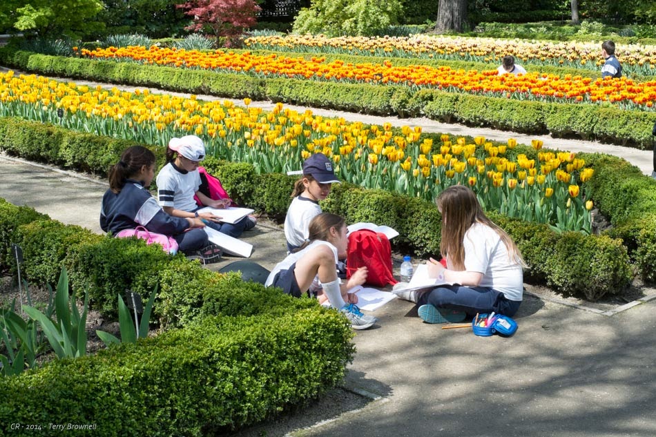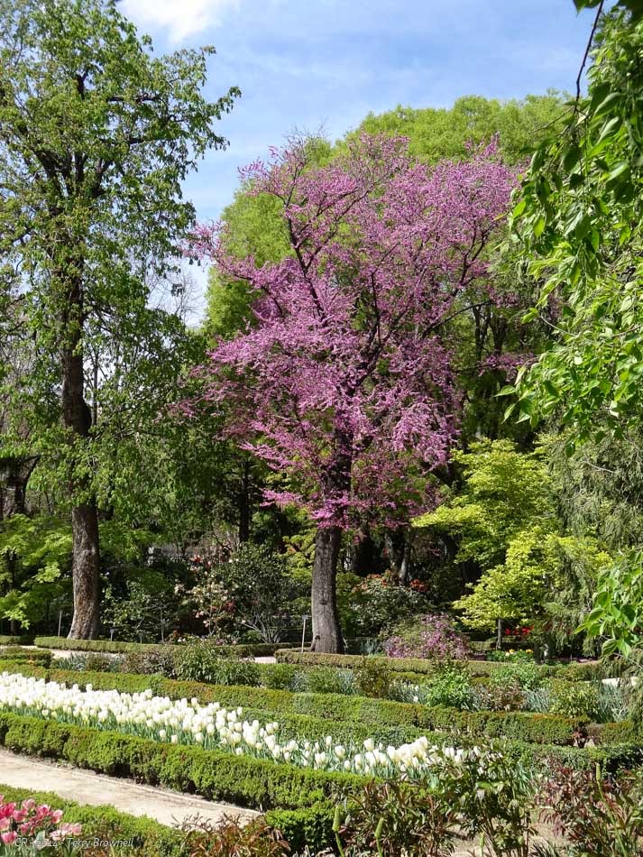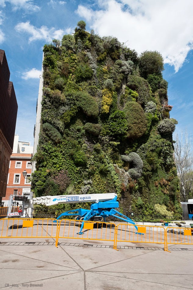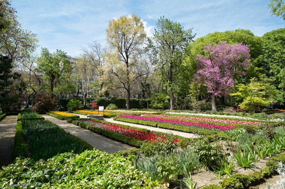 It’s such a nice place, we make it a point to visit every year regardless of the weather. Being a bit earlier this year, the tulips and rhododendrons were still in full bloom. A teacher had a class of 4thor 5th graders there, drawing flowers in art notebooks and tons of birds were singing in the trees. It’s just about peaceful enough to overcome the traffic sounds, but maybe not quite. We visited the nascent vegetable gardens and stopped a couple of times in the shade before leaving, crossing the boulevard again, photographing the famous Garden on the Side of the Building and then slogging up Calle Las Huertas again to a restaurant for lunch.