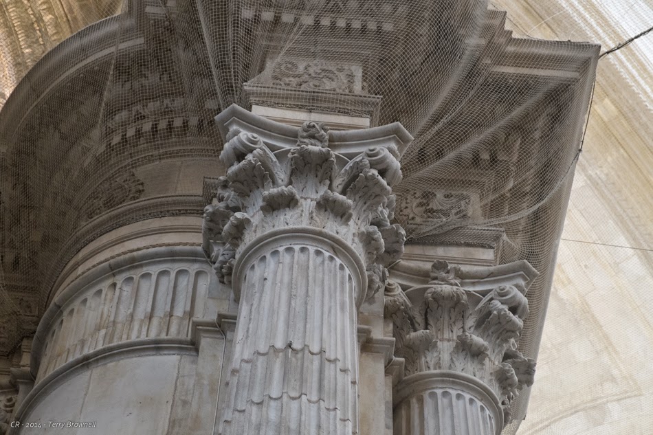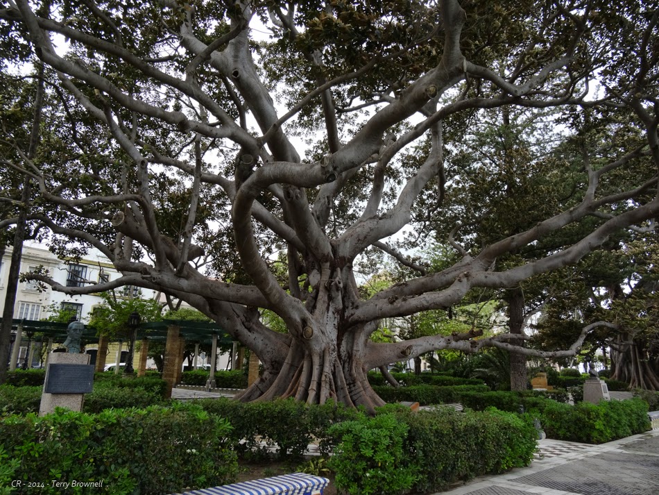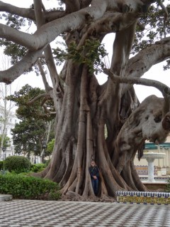 We found the temporary entrance around the side, having walked right by it on the first pass. It turned out to be a very nice museum with tons of nice artifacts from the Roman and Phoenician periods along with some very cool Paleolithic treasures including a couple of Neanderthal hand axes that looked like nothing more than a couple of big rocks you’d trip over without thinking twice. By now the sun was actually showing itself so we headed out towards the ocean, stopping to take some photos of the Dragon Trees, a local specialty with a giant crown and crazy crenellated trunks in the Plaza España before really putting into ourselves into the wind for a walk along the old city walls. Built in the same style as those that can be found in New World places like Havana and San Augustine, they were supposed to keep guys like Sir Francis Drake out and did so with limited success. Commerce was more honest in those days – you have a tower full of gold stolen from the Incas? I think I’ll sail down from Portsmouth and take it off your hands. We strolled through the Parque Genovés, a nice little outside botanical garden with some crazy trees and stopped at the Castillo Santa Catalina for a quick look. Across the bay we could see the Castillo San Sebastian, located on a little spit of land that once held a Roman lighthouse. Continuing on we cut cross country for a break from the wind and ended up at the cathedral.