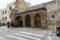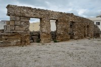 We found the ruins of the original Roman theatre a block up the street, more or less inaccessible due to fences and construction. Such is my lot with Roman theatres, first the one in Italica and now this – right there but not fully appreciable. A bit further down the street were some exposed ruins from the original, post-Islamic city walls. Nice to see and right there on the street.