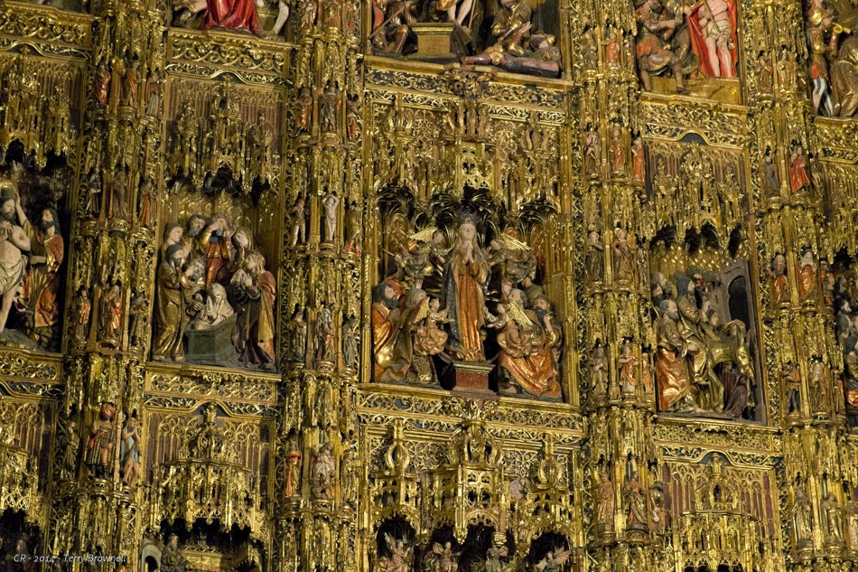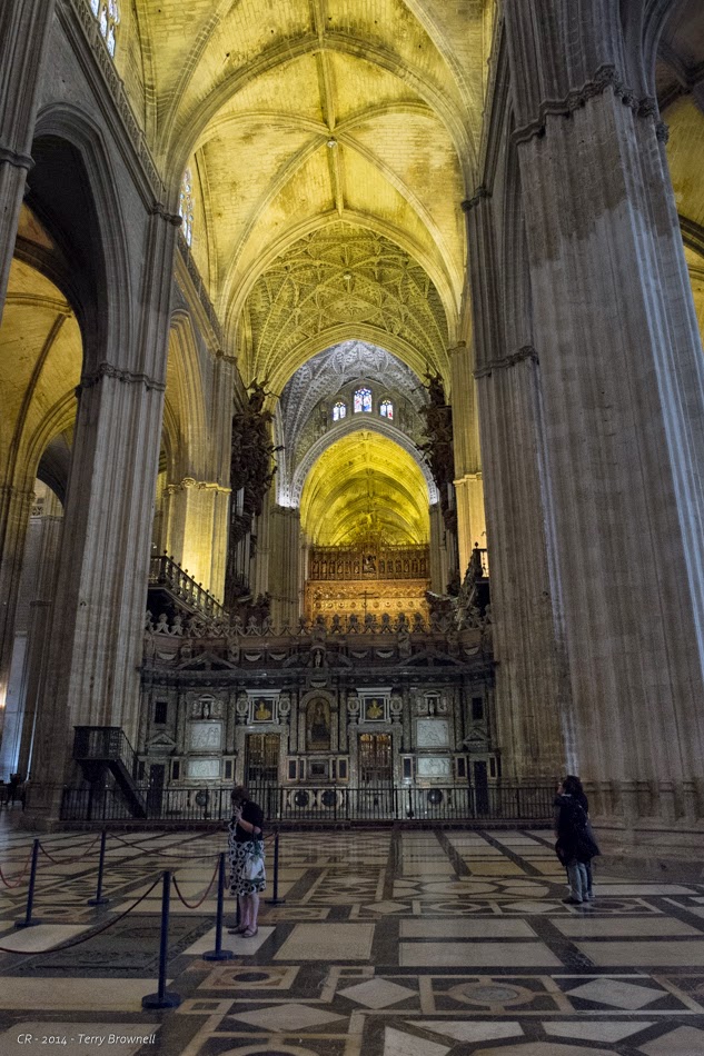Having been here before, we decided to just take our time and shoot a lot of photos of things we’d missed previously. I got those long hoped for photos of Christopher Columbus’ tomb and many of the very beautiful stained glass windows. But no matter what you seek in these places, you always come away with the same feeling – one of overpowering excess. So much gold, so much finery, all in the name of someone who ostensibly lived and died simply. It really makes you appreciate the rape of the New World and the amount of death that went into these riches. The real beauty of the place though doesn’t come until you step outside into one of the remaining features of the mosque that stood here before, the orange tree garden with its complex geometric brickwork, bubbling fountain and flowing water. Religious dogma aside, the 10thcentury Muslims had it much more together when it came to conveying a sense of spiritual peace with their sacred architecture.
