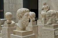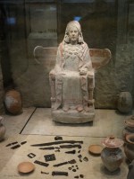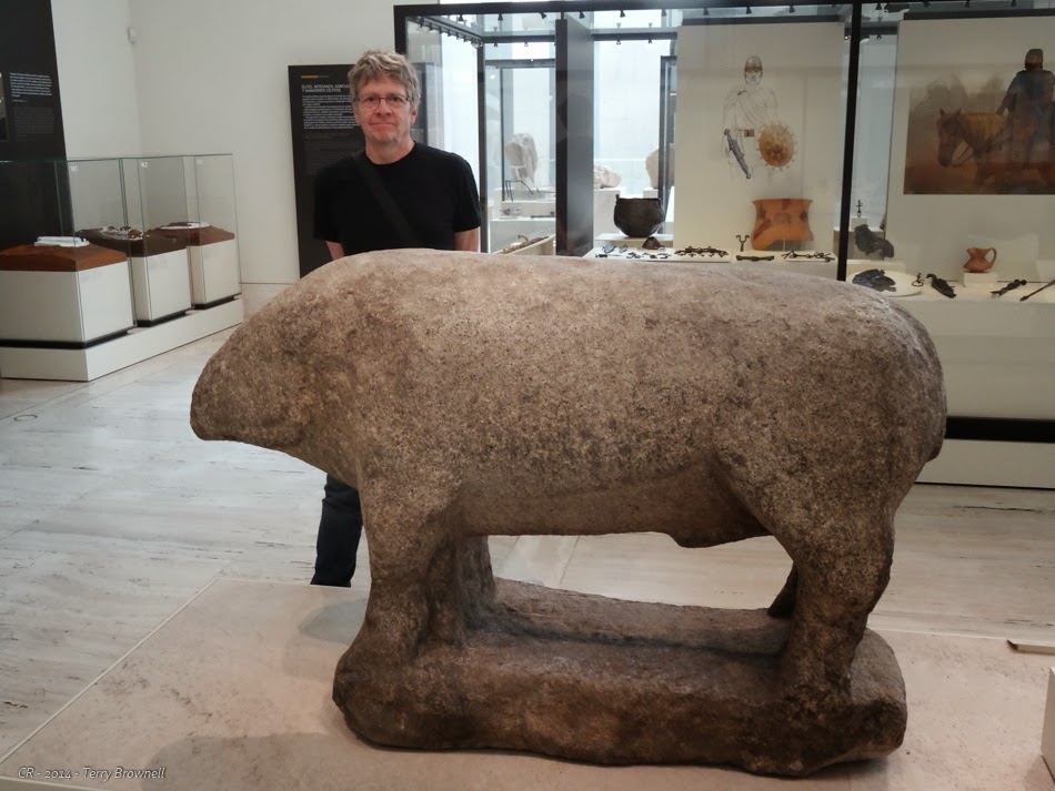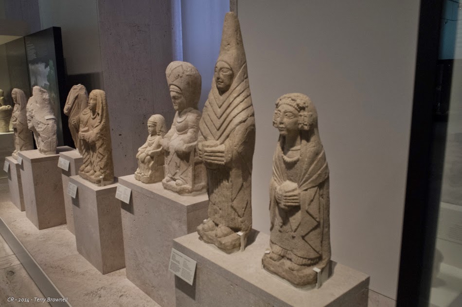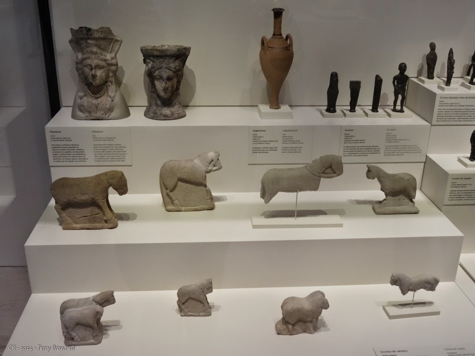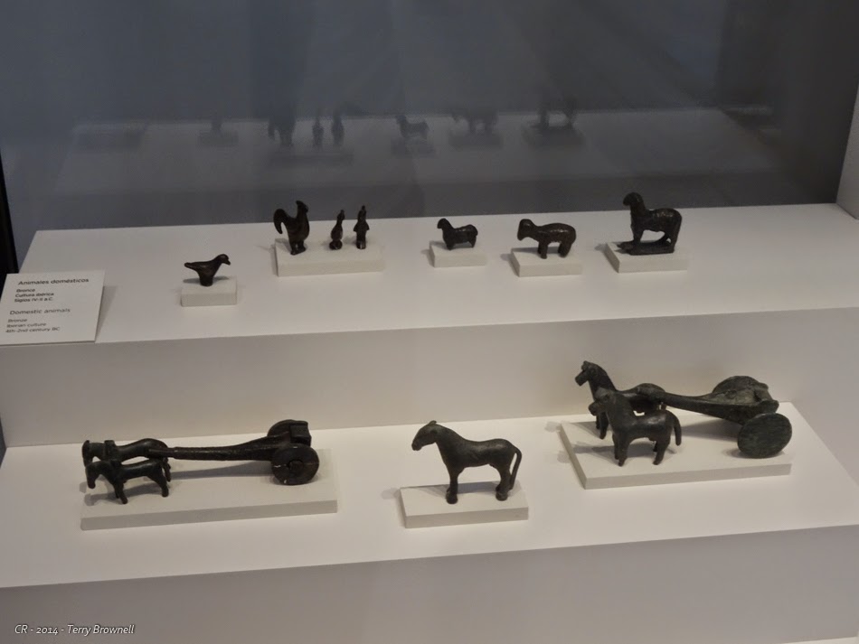Moving upstairs we spent far less time than we should have visiting the ancient era from the Celtiberians to the Phoenicians, Carthaginians, Romans, Visigoths and finally the Moors. If we hadn’t nearly spent all our energy getting through the Ice Age, we would have had at least as daunting a task of absorbing this material. We focused mostly on the ancient Spanish and Celts, because it was so well represented and it filled a gap in our understanding of the local, pre-Roman history. Wonderful sculptures, a lot of horse related artefacts and even another pair of Verraco, statues similar to those we saw yesterday in Ávila. I learned an awful lot about the period, and I was glad to have had the opportunity to see such a good collection from this era.