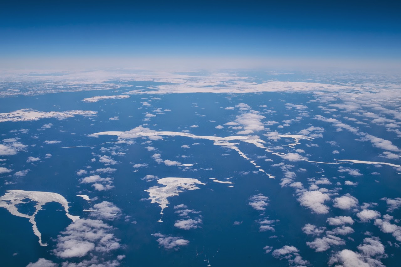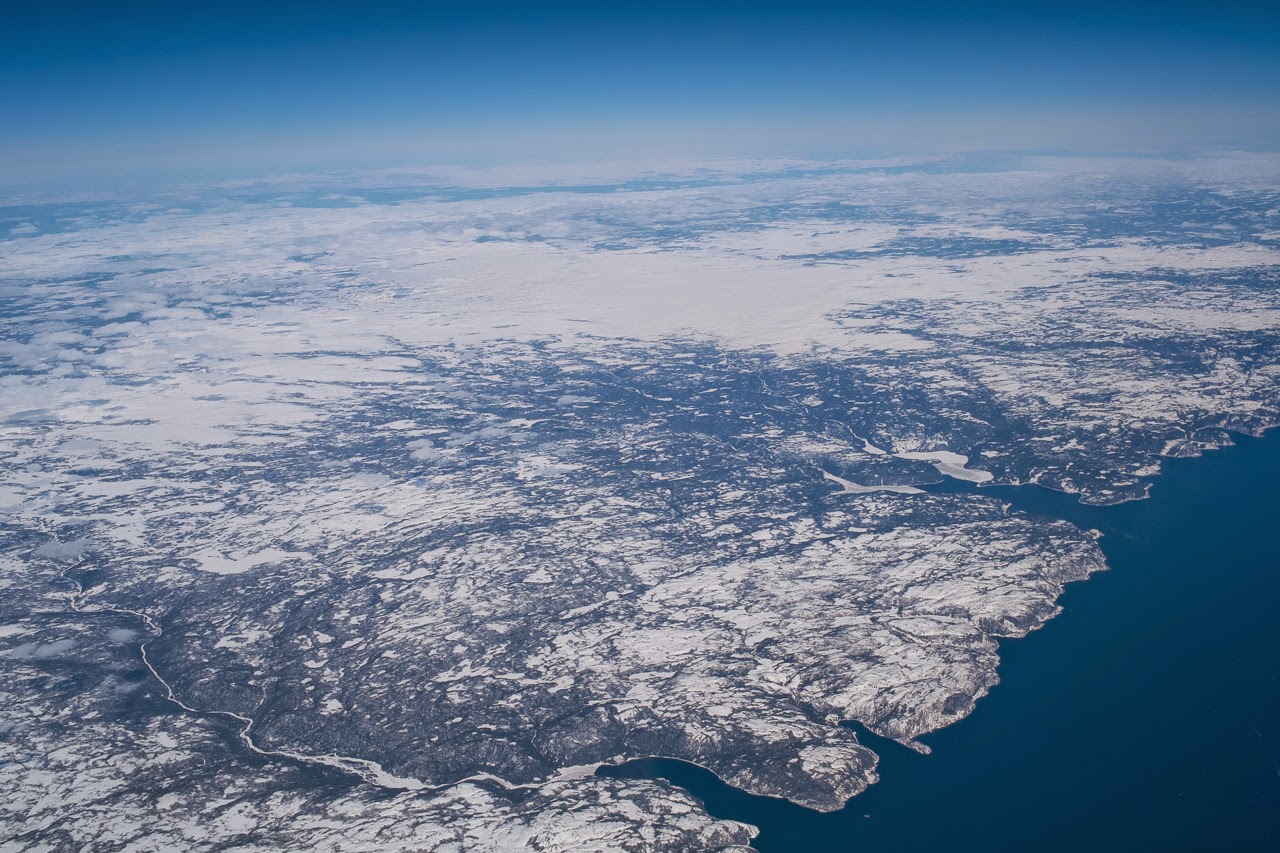 The ride home was pretty nice once we cleared the clouds hugging the mid-Atlantic. While the polite thing to do is to keep your window shades down, I sneak a peek every once in a while and yesterday was good day for that. Bright late spring sunshine pouring down on a vast expanse of sea ice, spread as far to the north as I could see. Coming in across Labrador and Newfoundland, the land was clearing up but the harbors were all still choked with bright white ice. We crossed somewhere into New England and flew straight across Quabbin Reservoir, one of my old favorite places in Massachusetts. Google Earth makes this kind of high altitude sightseeing possible – I love to take photos and come home and compare them against the satellite shots. It imparts a nicely detailed relationship with the physical world.