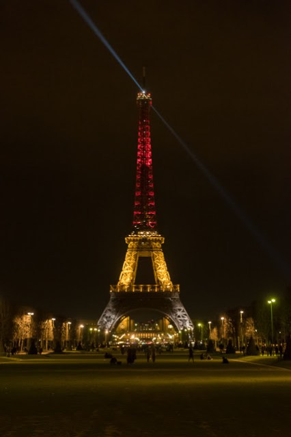 After which we once again faced the “is it time to go to sleep?” crisis, this time deciding to go out, get some air and walk back to the Eiffel Tower to see it lit in Belgium’s national colors. It was a mild night, a medium walk and the reward made it totally worth the time spent. Dozens of people just standing on the esplanade staring. Incredibly moving.