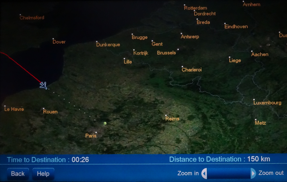 The plane was a newly built (or perhaps refurbished) 767, and the Business Class pods were not like any I’d see before. First, there is no longer anywhere to stow your shoulder bag, a point I discovered when the flight attendant told me to put my messenger bag overhead for take-off and landing. Secondly, the back-of-seat entertainment screen is just far enough away that I couldn’t see it with with my computer range glasses or via bare eyes. It seemed I needed something like my driving glasses which of course I never bring along when I have no intention of driving. Lastly, the design engineer saw fit to carry forward the curved edge to the well where you put your feet, which means if you have more than a 19-inch inseam, you can’t sleep with your legs out in front of you even with the bed in lie-flat mode. Ah well, at least the legroom was better than Economy, and the tickets were free, and I even managed a few hours of sleep which for me is highly unusual.