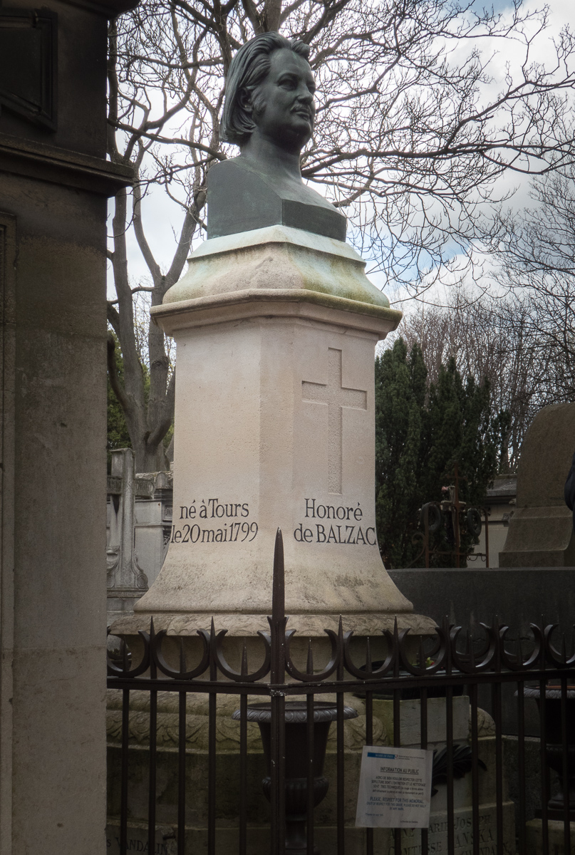 The final stop on our tour was the grave of Honore de Balzac (1799-1850,) renowned French author. He was easy to find as he was being visited by a small group of French senior citizens being regaled by a very animated tour guide.
