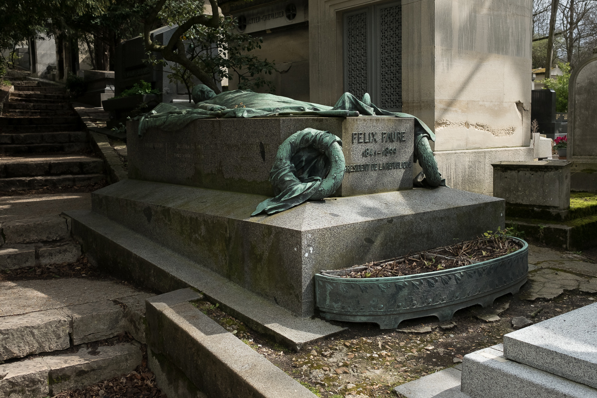 Across the street from Rossini lies the grave of Felix Faure (1841-1899) who was president of France from 1895 until his death. There was a couple there, and the woman made it a real point of not letting me take a photo, walking around and around it, rubbing her hands on the bronze statue. Not to be dissuaded, I waited her out.