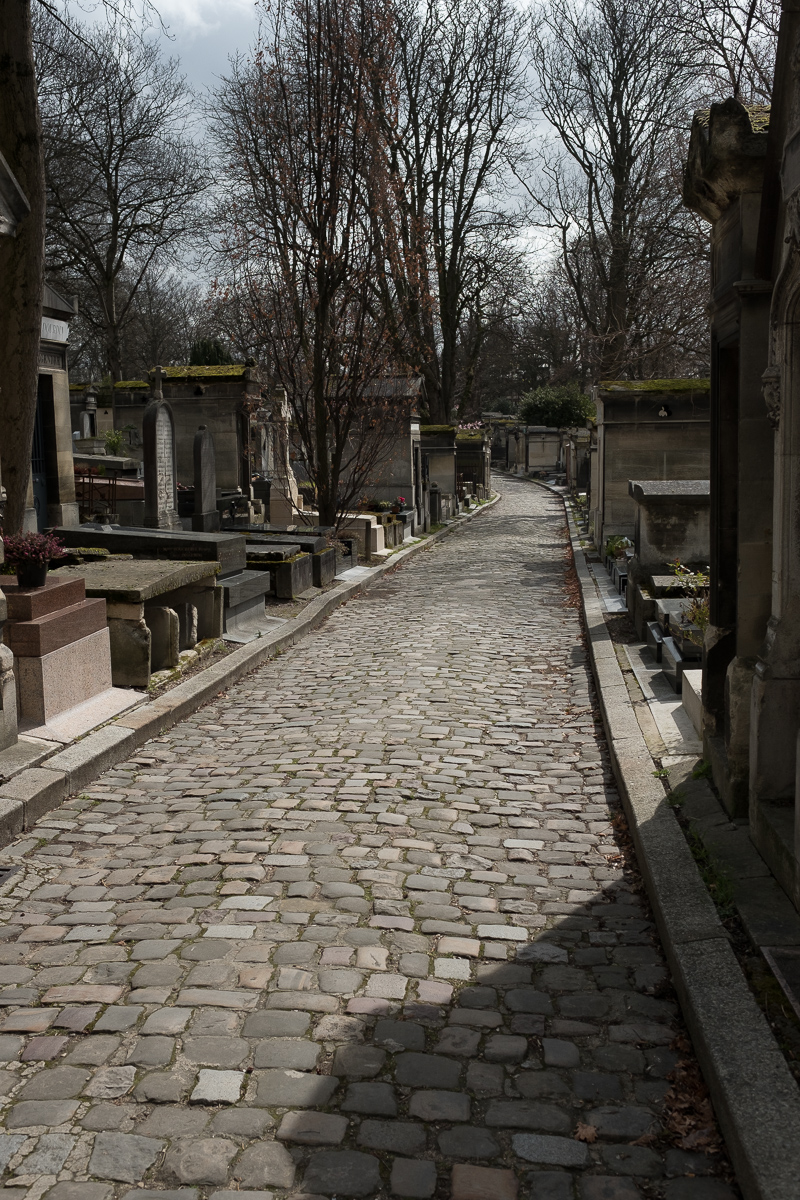So back out on the street and lo, our Starbucks appeared after only a few more blocks of walking. We had some coffee and a muffin and discussed our plan for the day. The weather was still good, so we decided to put Luxembourg on hold and instead take a grand adventure to the Cimitière Père-Lachaise, the final resting place of a host of historical figures, names that factored large in both the history of France as well as the world.