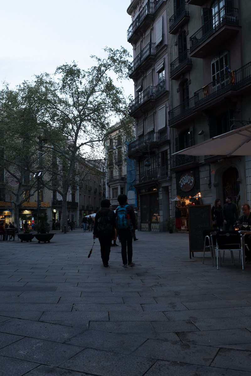 The apartment was easy enough to find and is pretty nice. A very modern conversion of a very old building. Lots of metal, ceramics and formica bumping up against walls of exposed ancient stone. No amenities whatsoever, another surprise considering the price. That fact pretty much forced us to go looking for a grocery store for some basics like a roll of paper towels and dish soap. Using Google Maps to find the closest Carrefour made things even more interesting, leading us past where we though the store was into the seedy Raval neighborhood to a Carrefour Express, essentially nothing more than a neighborhood bodega. We found some of what we wanted there, got some fresh fruit at the wonderful Boqueria fresh market and then went home, unloaded the stuff and went out for a leveling tapas dinner of fried potatoes, cod fritters and croquettes. Again fortified, we went and found the Carrefour we knew, which was a madhouse, but not too crazy, to get our pack of paper towels. Our transitional day from France to Spain was thus concluded.