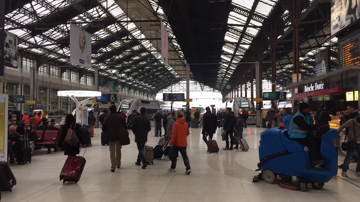 Our hired taxi driver picked us up promptly at 8:15 and we were at the Gare de Lyon 15 minutes later, in spite of the Paris traffic. Yes, it was early, but I had no idea how the place worked so I wanted to have some time to get my bearings. That turned out not to be necessary since this Gare is just a giant barn for trains, totally freezing inside and very simple to understand. We made a beeline for a coffee shop that featured heat lamps and blankets for our laps.