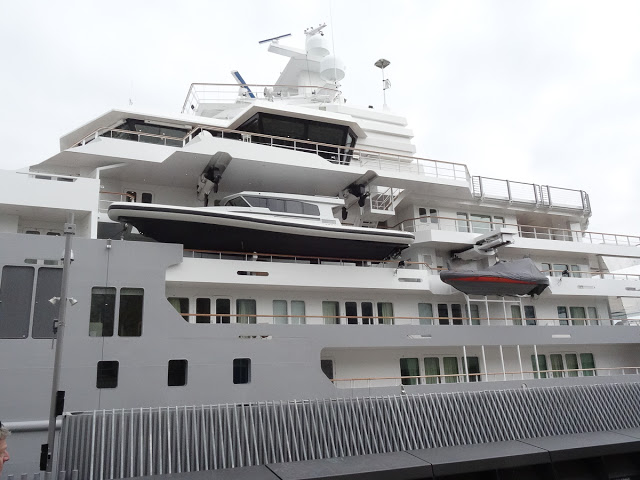 There was one shy boat, not parked with these beasts, but modestly tucked away across the harbor with only its nose sticking out from behind a big building. This one is the Katara – riding the seas at 124 meters, it belongs to the Emir of Qatar ($10B) and is valued at a few bucks over $300M.