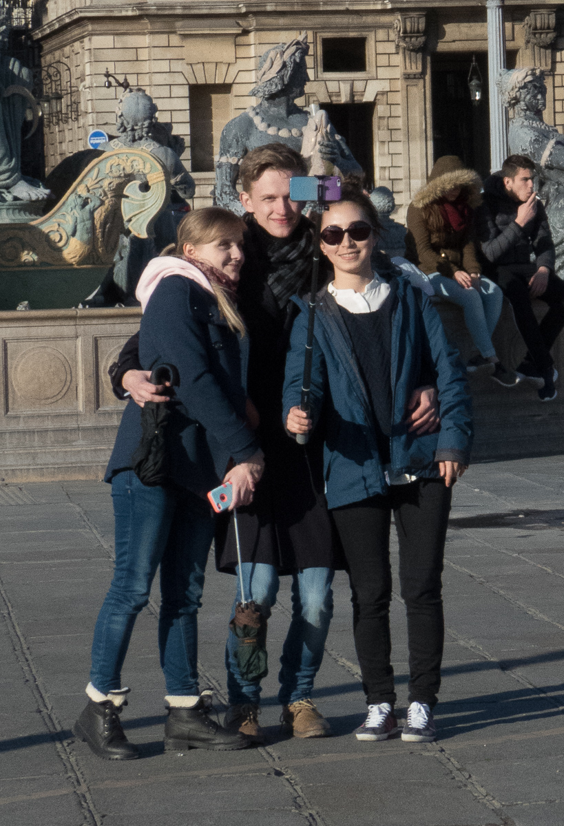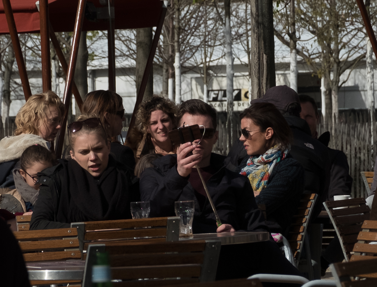 Selfie-sticks changed all that. They slowly crept into the landscape and now there are a hundred guys selling them on every square in Europe because it’s more convenient to buy one from a hustler than to go and pick one up in the dozen or so cell phone accessory stores that line the streets whose convergences forms those same squares. And this abundance has allowed people to start using them everywhere, all the time. In fact, people use them for all their smart phone photo needs. Not just Selfies. You see people whipping them around taking pictures of everything. Capitalizing on this trend, I have created a new hobby – photos of people taking photos of themselves. (I generally try to avoid photos of people taking photos of others, though once in a while one sneaks in.)