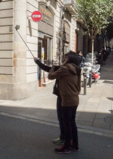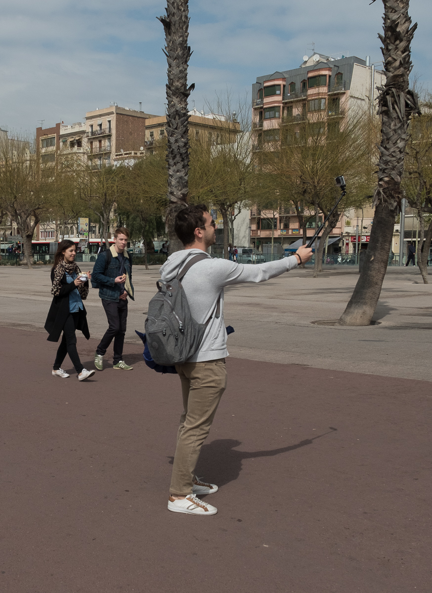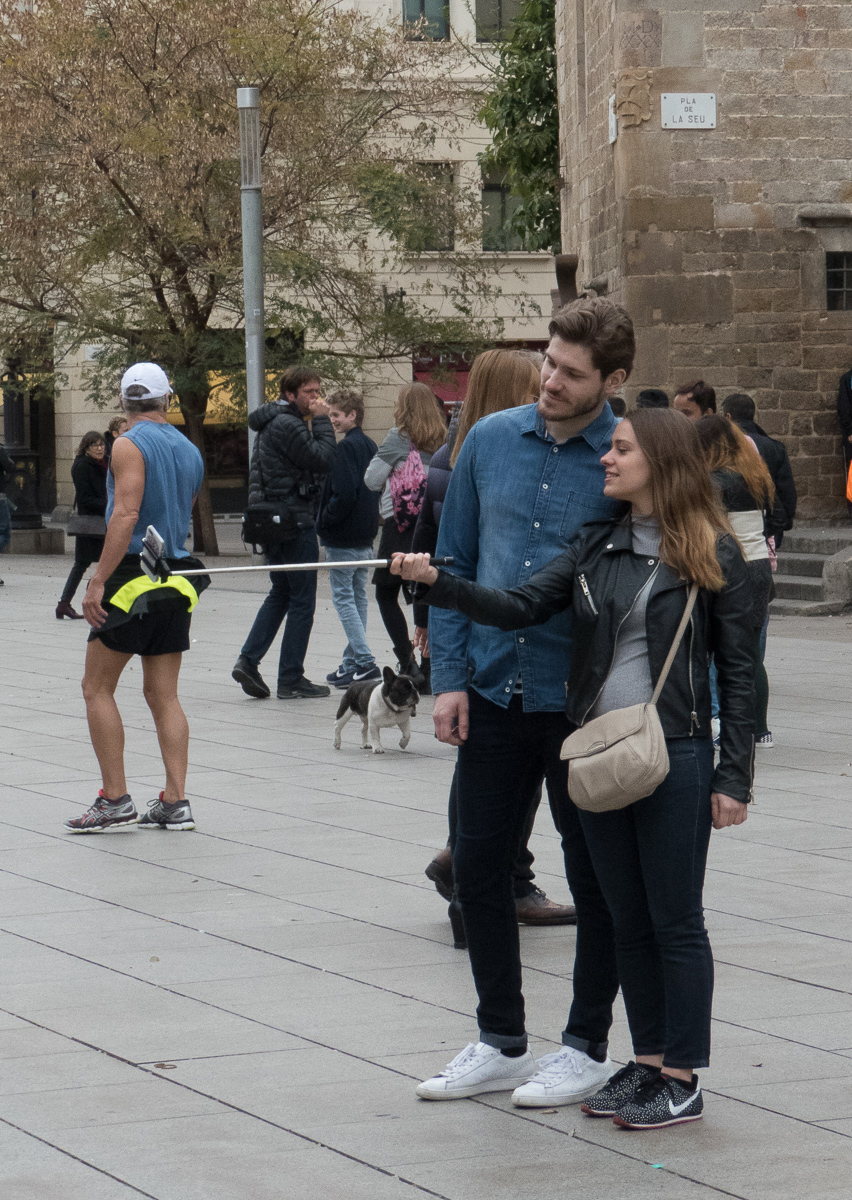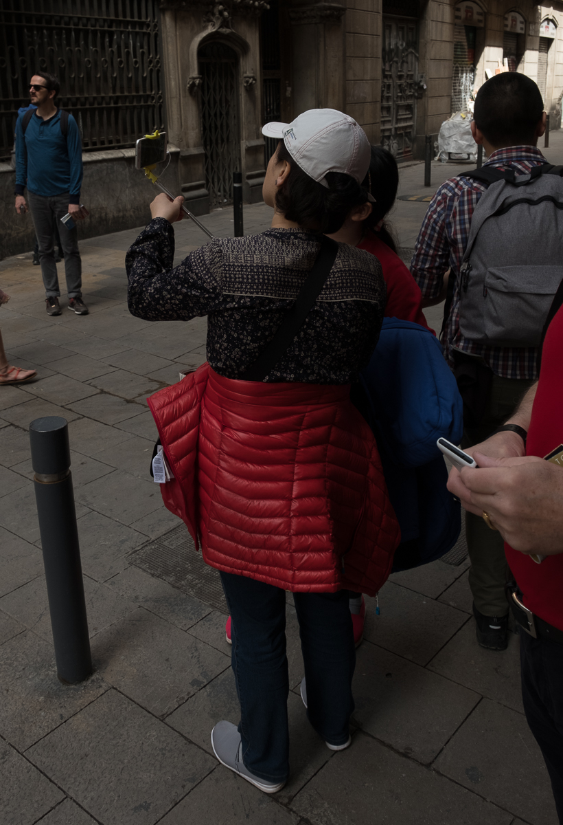 And finally, the Queen of Selfies. Out in front of the Barcelona Cathedral she was shooting a video (!) of herself, spinning around and around, flipping her hair, smiling broadly while dragging her suitcase across the pavers. Perhaps she thought she was in a photoshoot for Vogue, or some 1960’s cinema verite Goddard film. I don’t know, but I was so dumbfounded that it didn’t occur to me that I could expand my hobby by shooting live-action instead of stills.