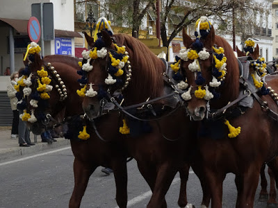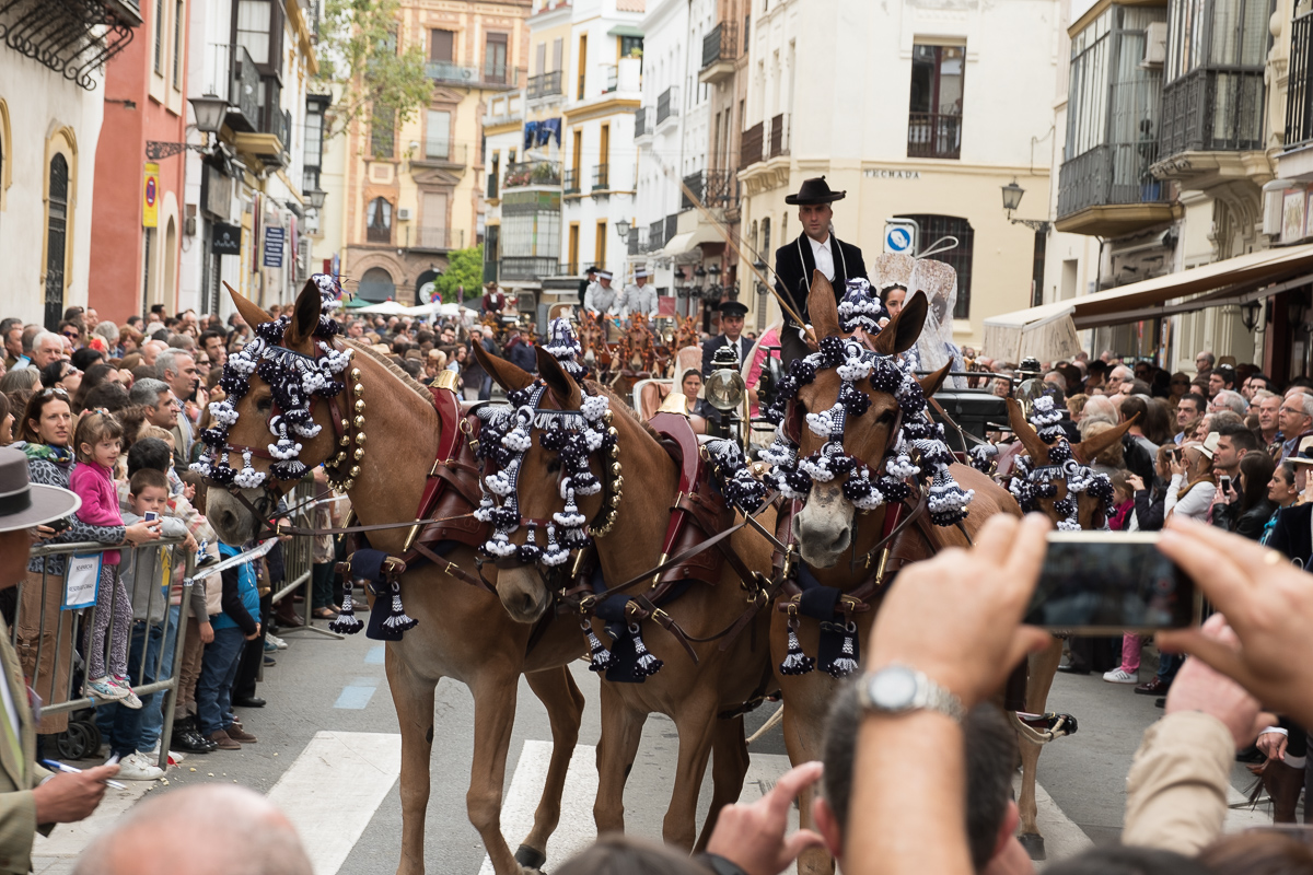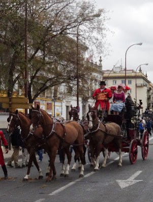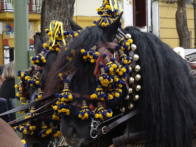 Before going out today the Wi-Fi in the apartment had been dodgy so I sent a note to Macarena to ask for help. When we got back she answered, informing me that it was a problem in the district and that I’d just have to be patient. I thanked her and told her I understood. She replied a second time and mentioned that there was a big horse carriage parade at the bull ring starting at noon (it was now a little after 1) but that since it was happening now, we’d have to hurry over there to catch it.