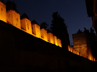 Winding around the Alcazar, we took a back route to my favorite place, the Callejón del Agua, named for the aqueduct that ran along the top of the wall that forms this little lane with buildings to the left. There is a section of exposed interior on the other side that has the original pipes installed by the Moors perhaps 1200 years ago. Washington Irving lived in one of these houses while penning Tales of the Alhambra in 1831. There is a plaque today, and you can see his old courtyard. You also pass a house whose balcony was the inspiration for a scene in The Barber of Seville.