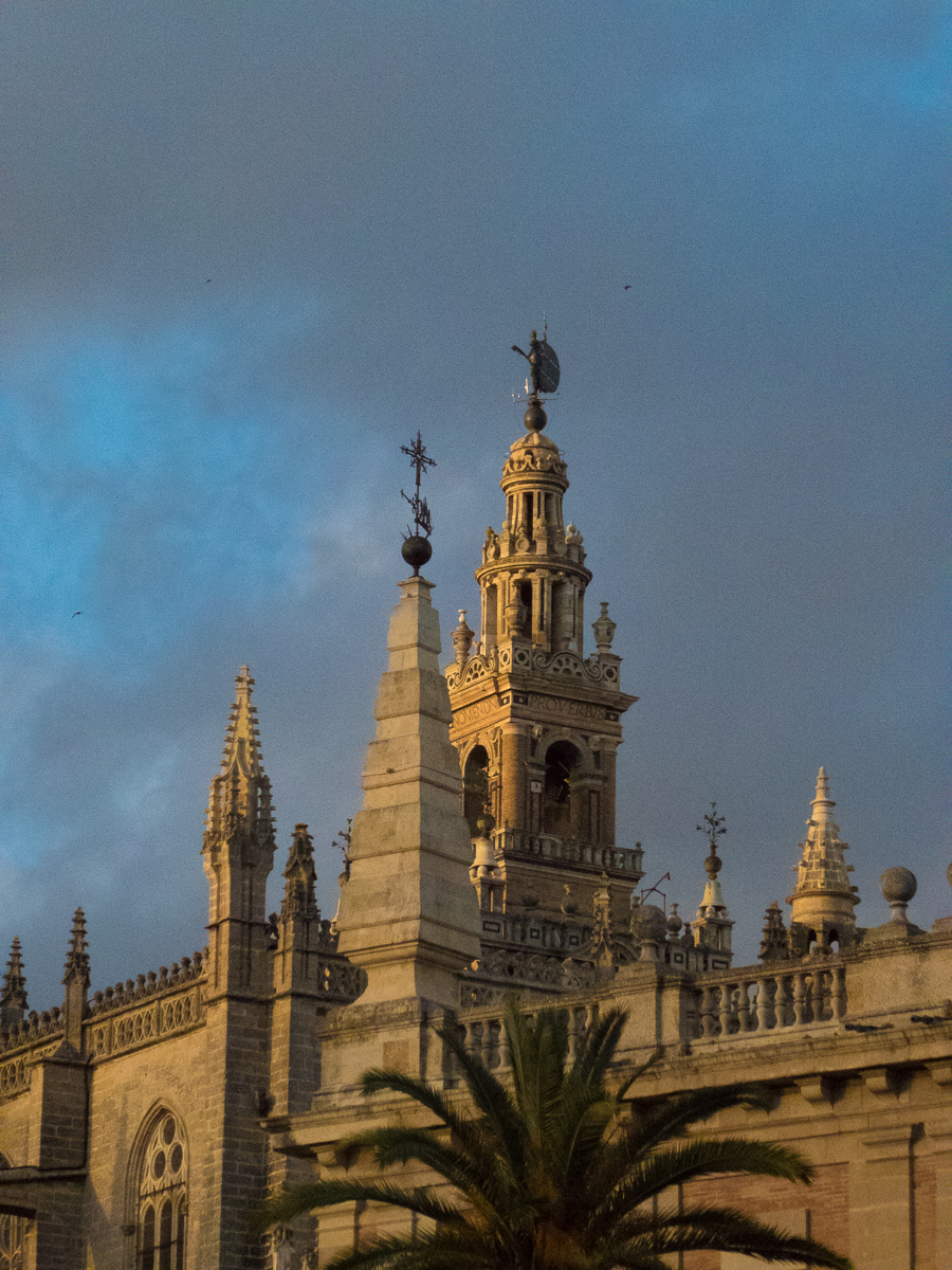 We took the back way through the Juderia and crossed some plaza whose name escapes me, stopping to take a photo for a young couple who wanted a picture of them with La Giralda in the background. The spot is quite famous, showing up often in advertising and travel magazines and is one of my favorites. But what I was able to get with his iPhone was just as miserable as you’d expect, it being dark and all. They were grateful and I offered to take another but they said it was fine and we left them with it.