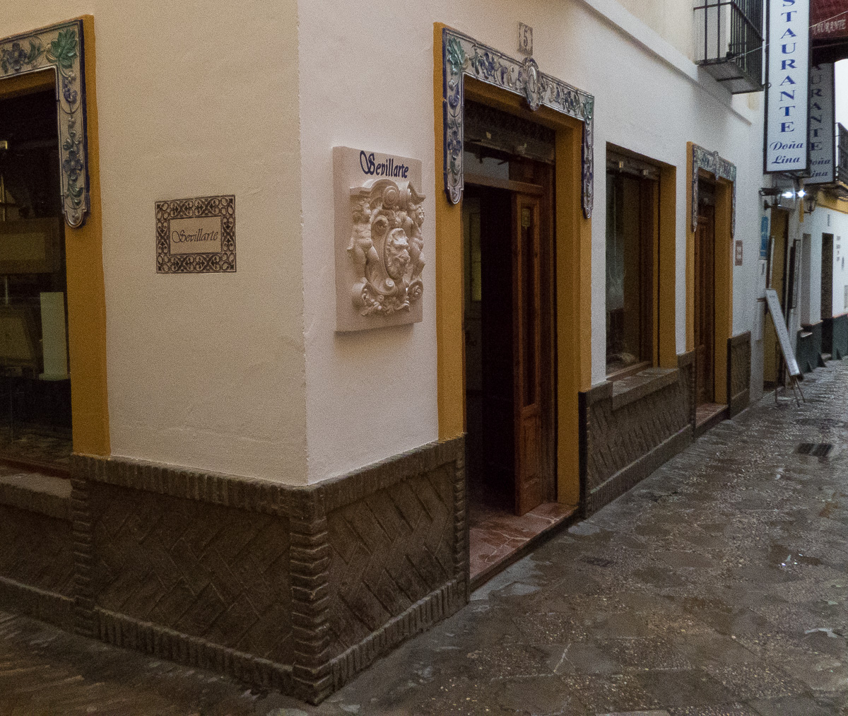 I tossed and turned all night long last night, and when I got up I realized there was only one thing to do – head back to Sevillarte and look once again at ceramics. On the previous day I’d fallen in love with an 18thcentury tile, pulled from some former palace during its demolition. When I had pointed it out to Angel, the owner, he told me that I had exquisite taste- it was one of the few genuinely old pieces in his shop. So with that in mind we went back, perhaps to purchase one of those “lifetime souvenirs.”