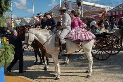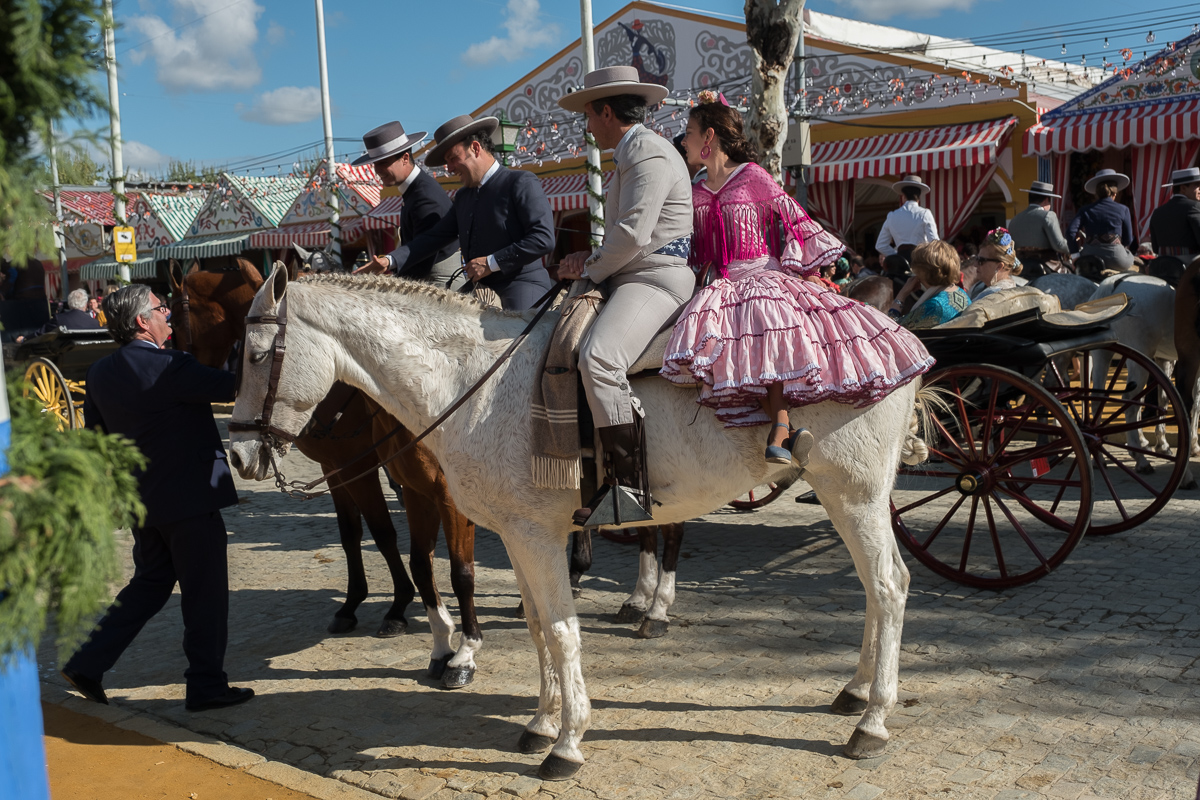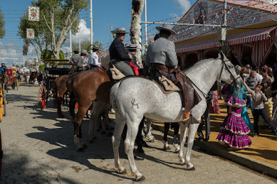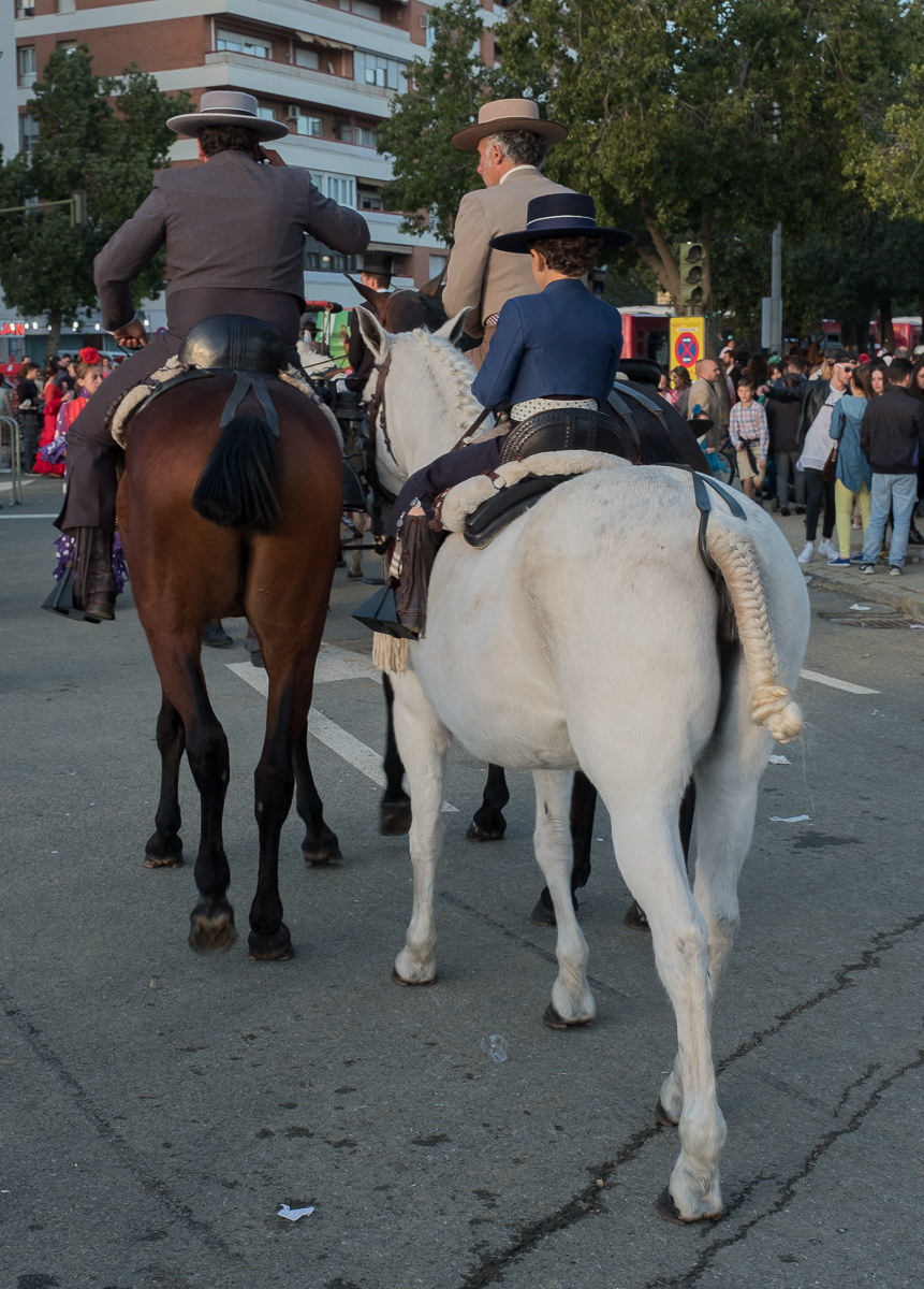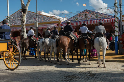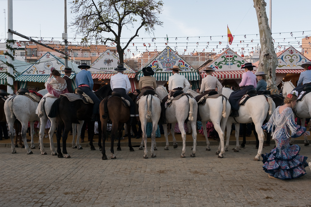This morning we got a text from our agent Macarena gently suggesting we come and visit with her at her caseta at La Feria. Now this is our last night and we have stuff to do and it’s not like we didn’t walk down there twice yesterday. But she was so kind about her offer, even including a little smiley face, that we decided we’d just make it work. In addition to the getting there, we also have a pretty big language barrier, and we really don’t have the right clothes. This event is fancy, and all we have (by design) are traveling duds. However, that nagging “once in a lifetime” thing kept at us and so at 5:45 we went downstairs and looked for a cab at the taxi stand. Of course there were none. So we high-tailed it over to the taxi stand by the cathedral and missed one as it pulled away.