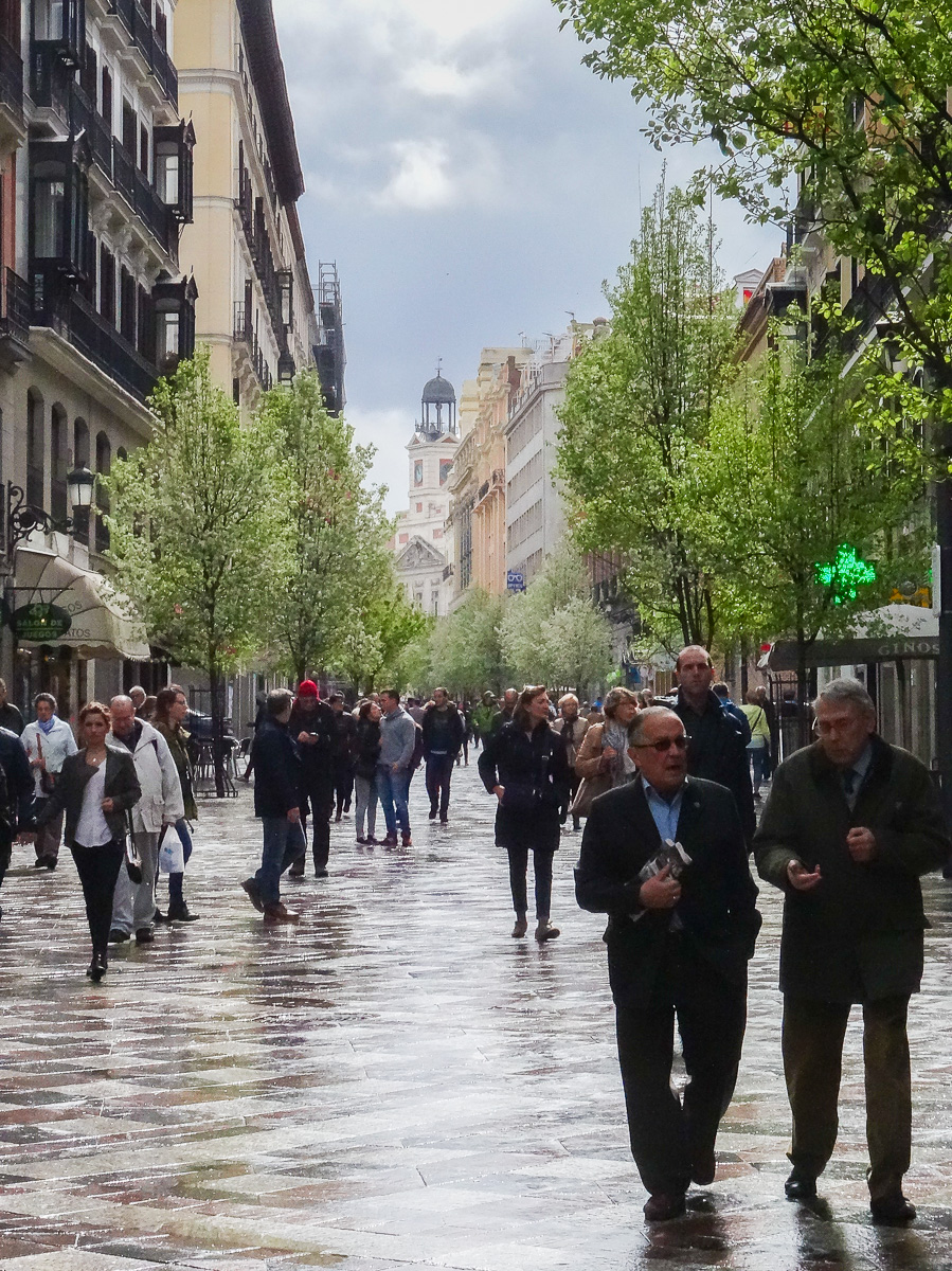 There is not much more to be said about today than it rained. We got out for a while after doing our last load of laundry, bought the paper, had coffee and went to Corte Ingles to buy me a new umbrella, replacing the “windproof” Eddie Bauer brolly that was half-shredded in a breezy Paris. The rain changed its behavior and started coming down in buckets just as we left the store (brilliant timing) and so we headed home which was thankfully not far.