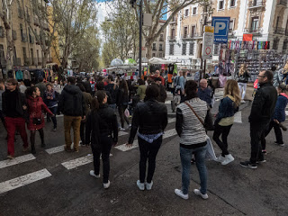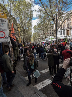 It being Sunday, it was time for El Rastro and our annual pilgrimage to Europe’s biggest flea market. We started out walk with coffee and a Napolitano from shop across the street, and then climbed up the hill and across the square and down Calle Concepción de Jerónima to Calle Toledo. As always we were preceded by other people heading to the same place, this year though we were early and the crowd was much smaller and for the very first time, the browsing was actually fun.