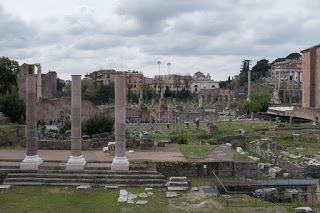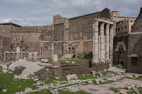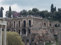 We reached the Coliseum a few blocks later but not before being accosted by another street vendor who began by asking to compare our skin tones before moving on to how happy we looked. Sorry my brother, but once a day is enough. (I did wonder though if his wife had just had twins too.) Looking at the size of the place and the crush of people, we decided we didn’t need to brave the crowds and made the same call moments later regarding an overwhelmingly swamped entrance to the Foro Romano. We decided instead to take a leisurely walk back on the west side of the Via and to appreciate the remains from the platforms overlooking the whole area. It was good decision, because often when you get down at the ground level, the rocks are interesting but it’s impossible to appreciate the whole. Doing it from above made it nicer in a way and certainly better suited to our growing aversion to the crowds.