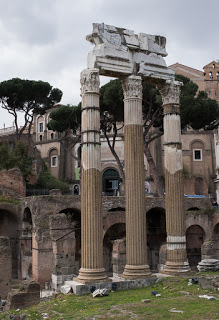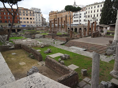 The walk down was rough – a long, busy, noisy, everyday boulevard. Halfway there we happened to look across the street and found the excavation of a couple of temples that belonged to two wealthy Roman families in the waning years of the BC period. Called L’Area Sacra di Largo Argentina the title had less to do with the country than with the original name of Strasbourg, France which was Argentoratum, and the home city of one of the two families that funded the original buildings. Of note was the fact that Julius Caesar was assassinated on the other side of this very square, marked today by three ancient columns and a modern pine tree. Complementing the nicely restored ruins were a lot of teenaged couples making out. I’m not sure if there was an actual connection.