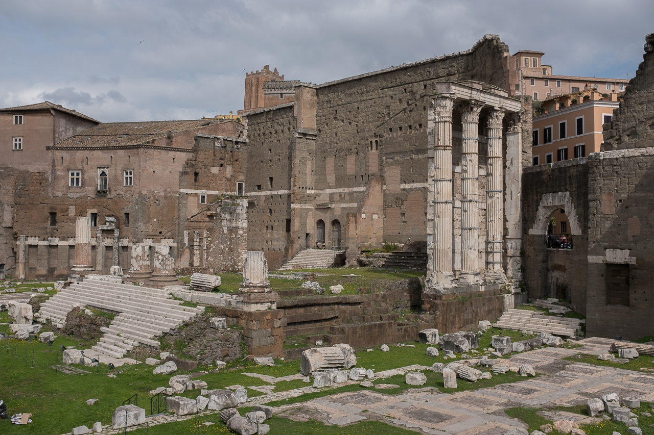 The Via here is lined with ruins on both sides so we took the east down, marveling at the Forum of Augustus. About this time, I realized that I actually do have a large but limited capacity for ruins. The first time you see a 2000-year-old building you’re a bit stunned. Then your mind clears and you can appreciate the details of the craftsmanship and engineering. Then they start to look all the same, and after an hour and 4000 columns, I was there. These were certainly extraordinary, but after a while the nuances get swamped by the profusion.