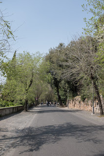 As we climbed up the hill to the park the panorama of Rome opened off to our side. St’ Peter’s on the far right, the Victor Emmanuel memorial on the distant left. A pale haze obscured the vivid orange and red details of the roofs, dotted here and there with the dome on an anonymous church and the emerging green of spring time trees.
