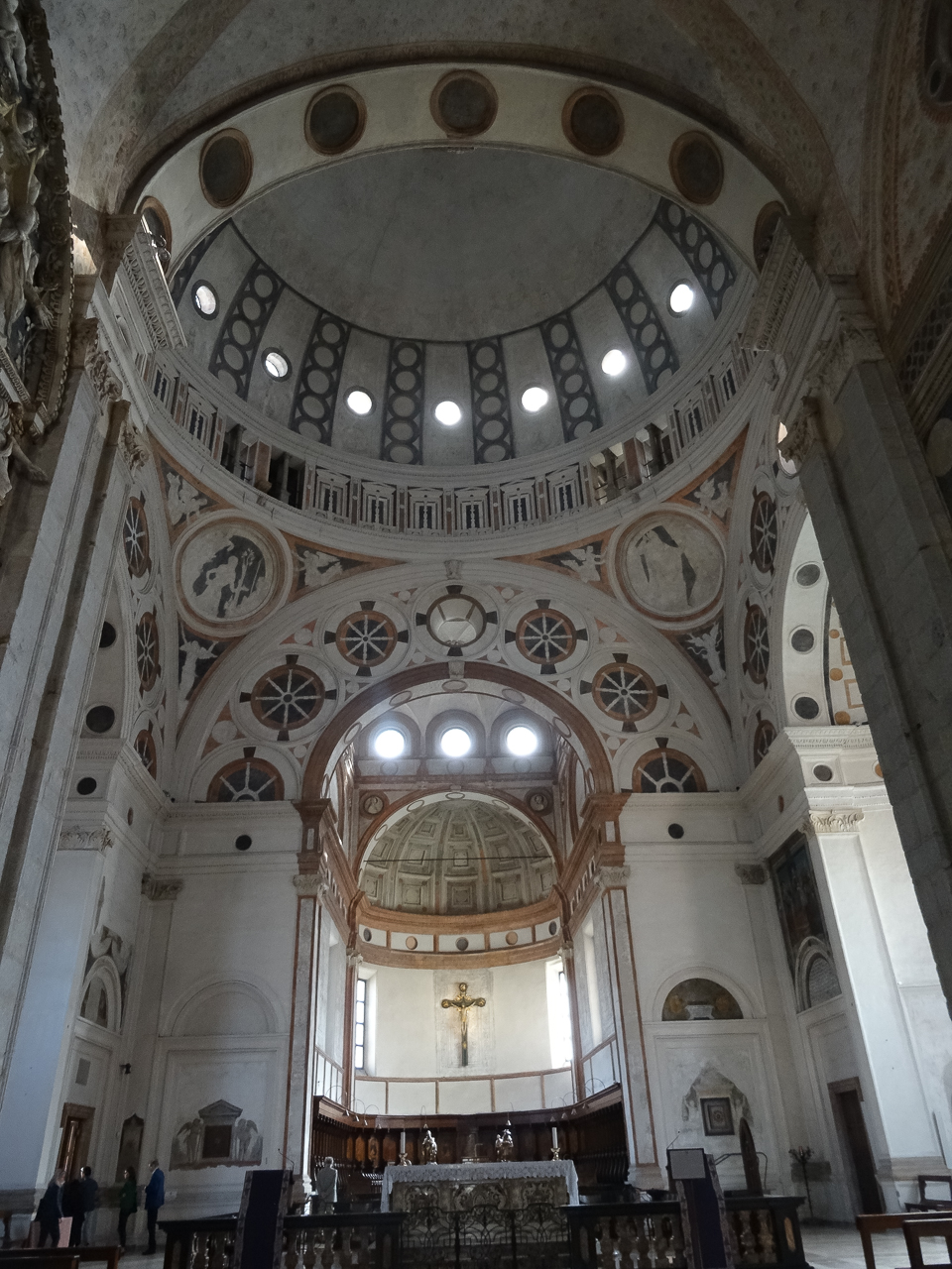 The monastery that holds the chapel, Santa Maria delle Grazie was founded in 1462. It was expanded in 1490 under the direction of the Duke of Milan, Ludovico il Moro as his place of interment. Several noted architects including Bramante participated in the design and engineering. We spent a little time visiting it before heading out to our next stop. Modest, calming and really quite charming, it would be a nice place to take a break on a hot summer’s day.