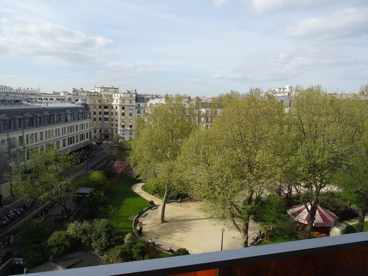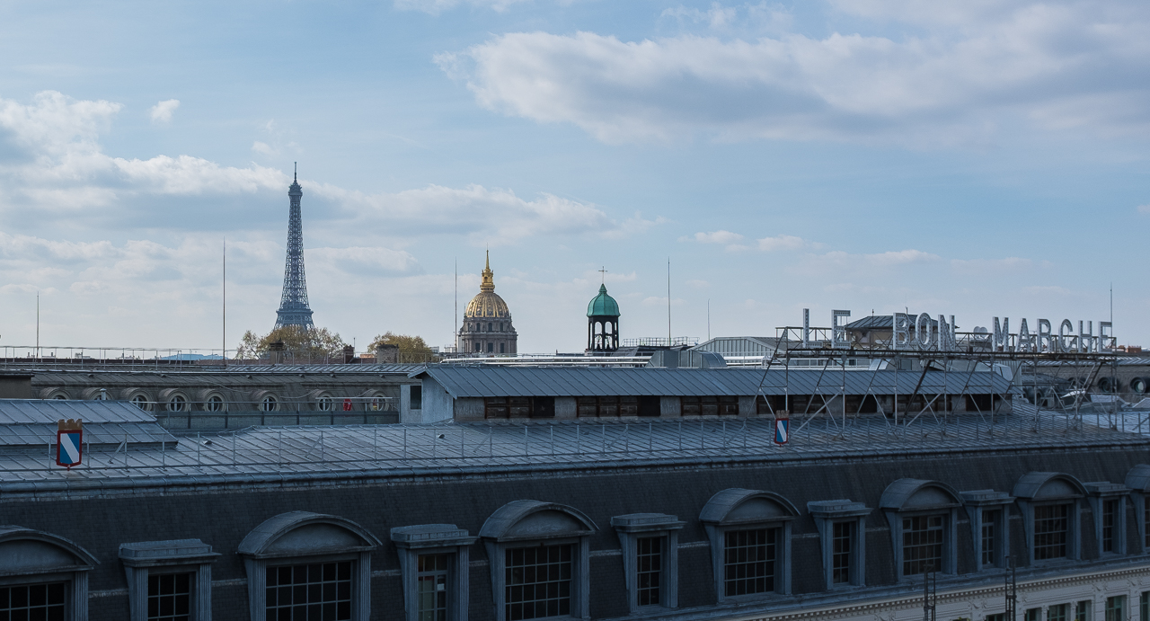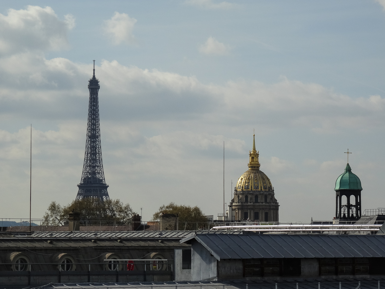 The apartment owner’s brother was supposed to meet us at 4 but was late so we parked ourselves outside and watched the shop workers stepping in and out for cigarettes. In that respect, we’re right back in Italy – the curbside air smells more like smoke than outside air. He showed up in 10 minutes and we rode up to the seventh floor – a nice flat with a stunning view of the Eiffel Tower and Les Invalides. We hit the jackpot on this one, a washer and a dryer, and what a change from the last place.