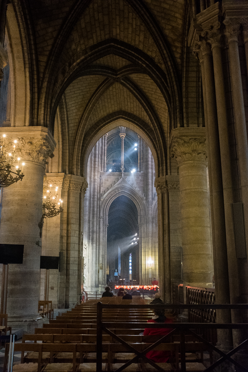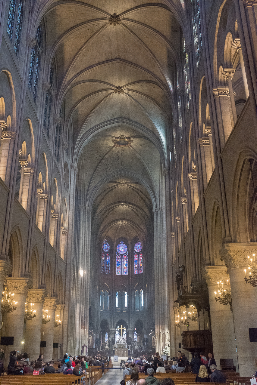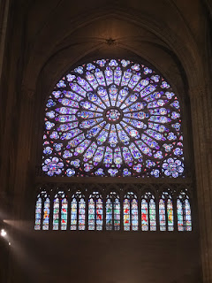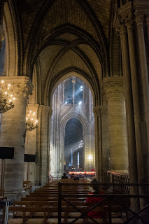 From there we went on to Notre Dame Cathedral. Knowing it was going to close at 6:45, we had about 45 minutes so we got in line and went inside. Friday night mass was underway so we were treated to organ music, some singing and plenty of incense which created sort of smoky background for the mass. Whether you are a church-goer or not there is something special about being in one of these ancient places and hearing the organ and bells. Just mystical. We stood and watched and listened to the priest as he delivered the service. Tonight, with a ceremony in progress, it felt as though it could have been 500 years ago.