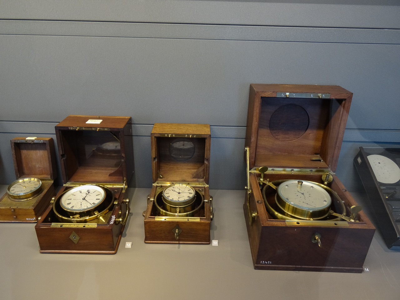 One of my favorite parts was a section devoted to the marine clocks used to determine Longitude. Sailing in the 18th and 19thcenturies was difficult, because aside from using a sextant, it was hard to know where you were or how far you’d traveled. The concept of Longitude was eventually proven by the use of very precise clocks, mounted in gyroscopic boxes that removed the effect of the ocean on the clock’s mechanism. They have a very impressive collection.