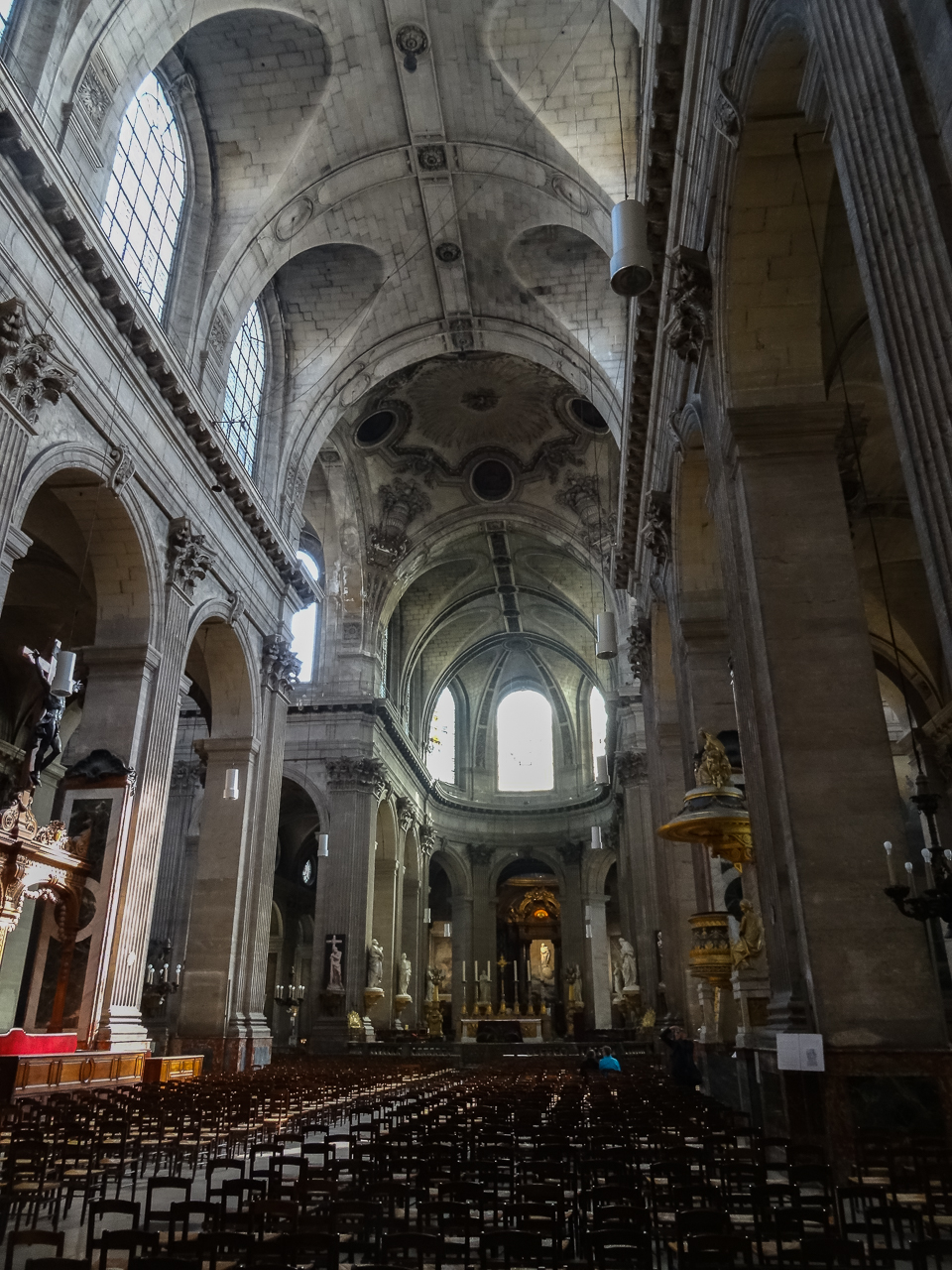 Saint-Sulpice is the largest church in Paris and was built starting in 1646 by Father Jean-Jacques Olier, the father of French School of Spirituality. Concerned that the city was not serving the people thoroughly, he attempted to create a parish that would provide the same level of care and devotion as a small rural church might. Of course, the project outlived the man, and the building was completed in 1745. Its most unique feature, one of the world’s largest pipe organ, containing 6,700 pipes. Sadly for us, our organ recital luck wasn’t working today and no one was playing.