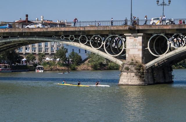 On top of solving washing machine problems day, it was also one last trip to the grocery store day so we left the river and re-traced our steps from last night down Avenida Reyes Católicos to Corte Ingles, the big Spanish grocery store, stopping along the way at that big toy store I found last night. We spent a bit of time looking at the big collection of incredibly expensive infant dolls that were sporting “certificates of authenticity.” Not sure what they were for or why they were so costly, but they certainly made a strange storefront. Corte Ingles was pleasantly uncrowded for a Saturday morning and we were in and out in a jiff. The streets were another story, all the missing people had reappeared, so we had to wend our way through moderate crowds before clearing the shopping district and making our way into the plaza. Nice shade and a brisk breeze made that part of the trip home quite pleasant. The first half of our day was ended with a great lunch of cheese, Iberico ham and bread. Time for a siesta.