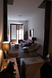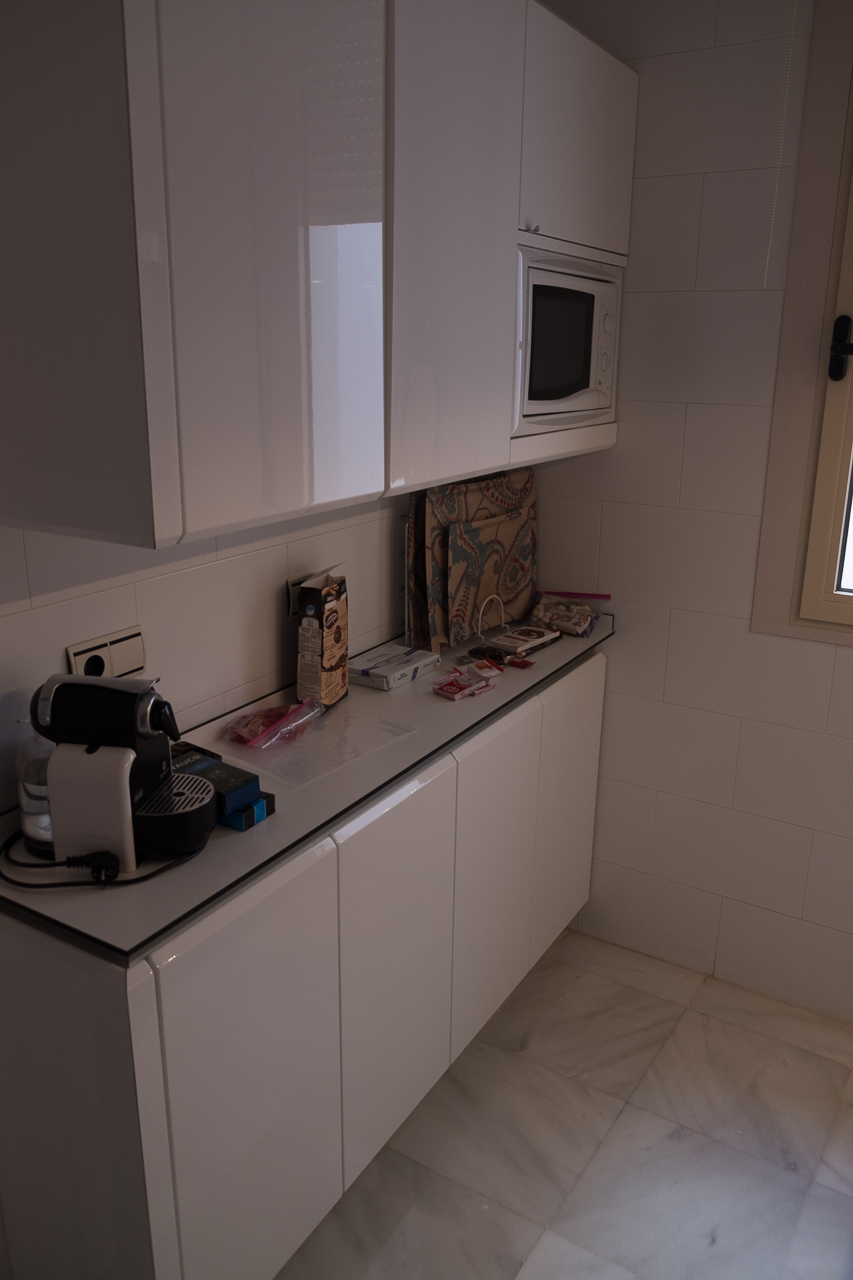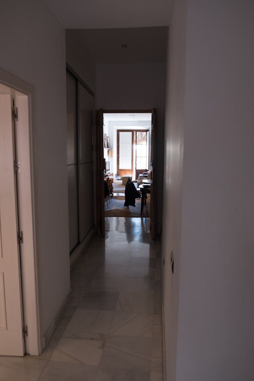 Mateo Gago 23 is located on the first floor (primera planta) about a half-block up from the busiest area. So less human noise and cooking smells but still a lot of traffic noise. Two bedrooms, two bathrooms, kitchen, dressing room, washing machine and long, long halls, typical of these 16th century building conversions. Lots of air and light due to the air shafts off all the back rooms. One the whole, a nice apartment, lacking mainly the same things other rentals lack – lighting, comfortable furniture and a decent mattress. Much like every owner-operated rental, the investment is minimal and so it’s the guests that deal. I’d probably rent it again though, based on the location and the space.