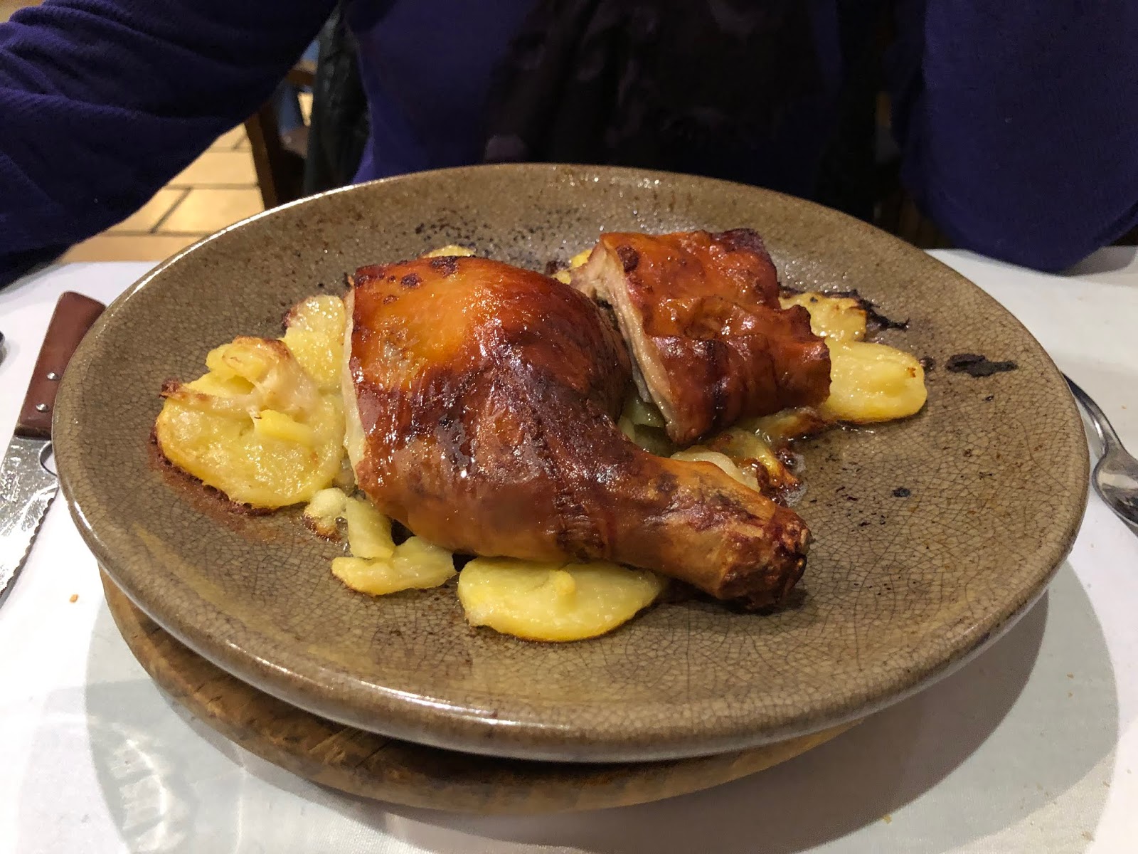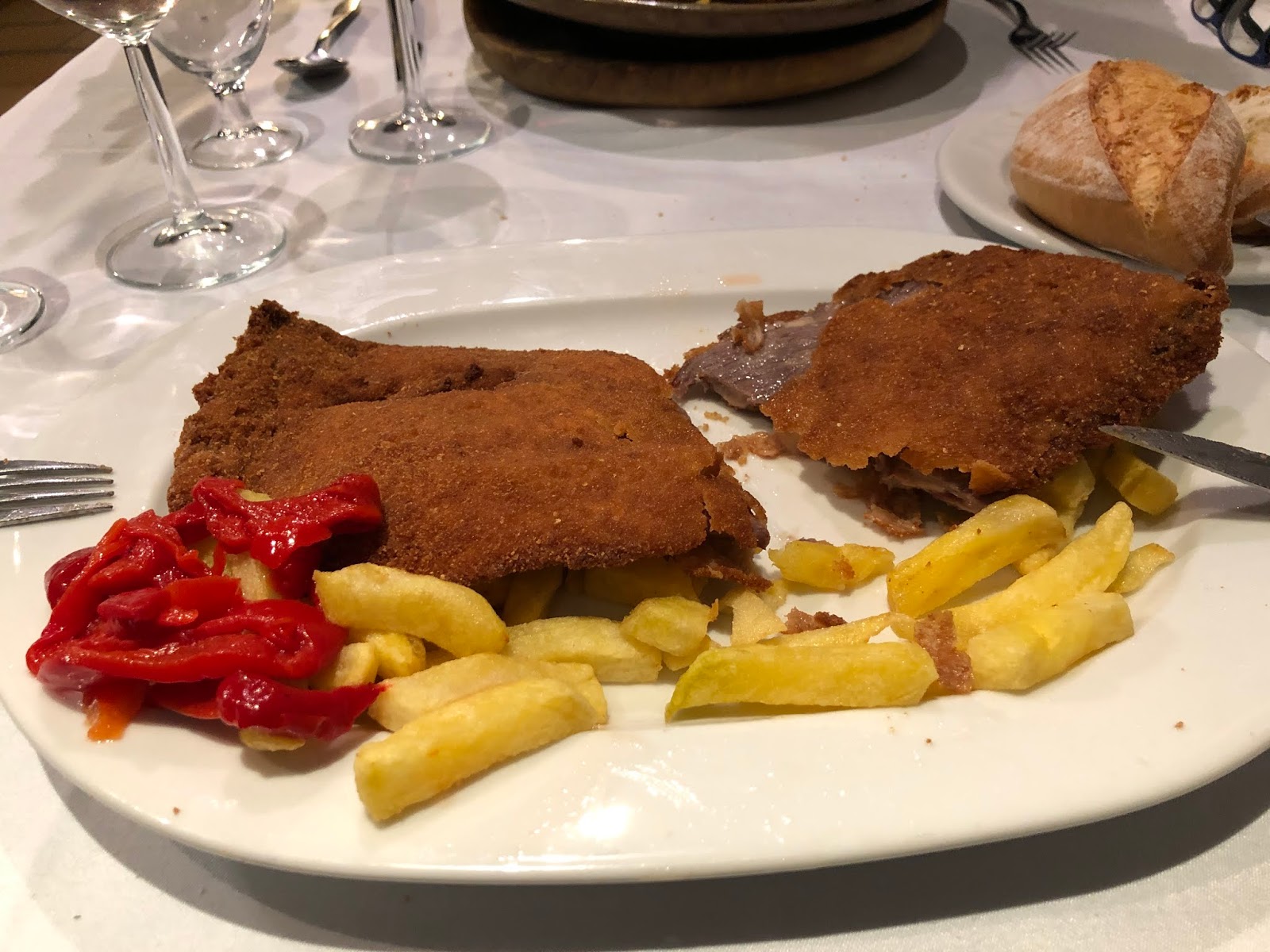 It turned out to be one of those most memorable meals, fantastic food (Cachopo for me, Cuchinillo (roast suckling pig) for MLW,) great conversation with the waiter, and the perverse enjoyment of watching other people trying to navigate the language. The family at the table next to us also ordered Cuchinillo but the waiter said it was sold out for the evening. MLW had bagged the last order.