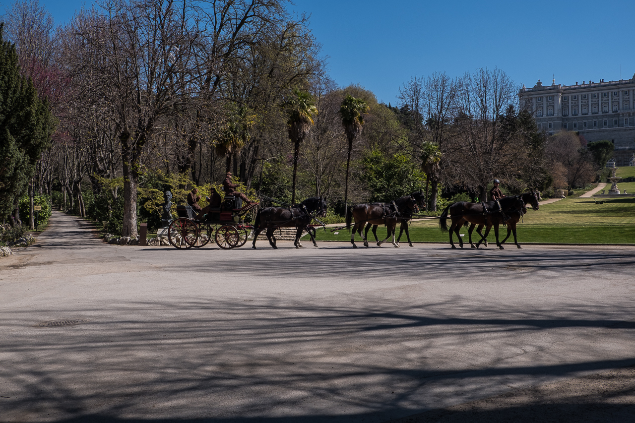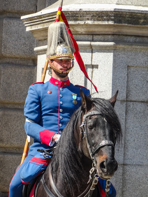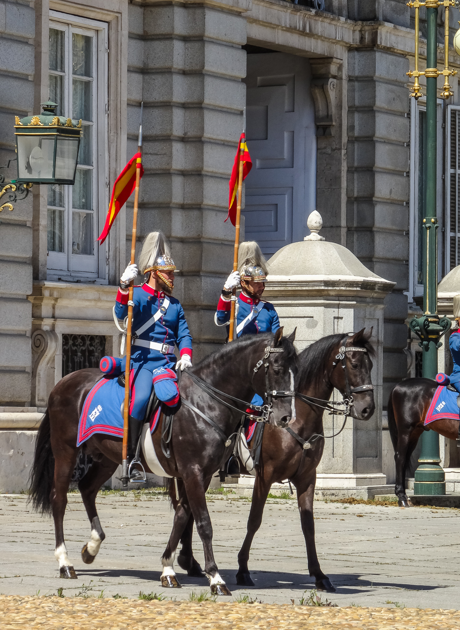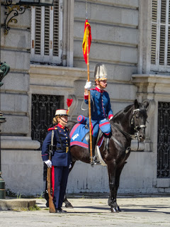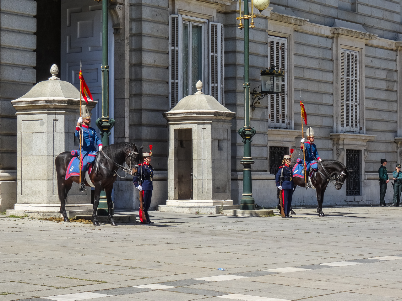 Ending the uphill death march, we passed by the Palacio Real and were lucky enough to catch the changing of the guard. Four men on horses, two women soldiers and a small fife and drum band. Not the most formal display but certainly worth watching.