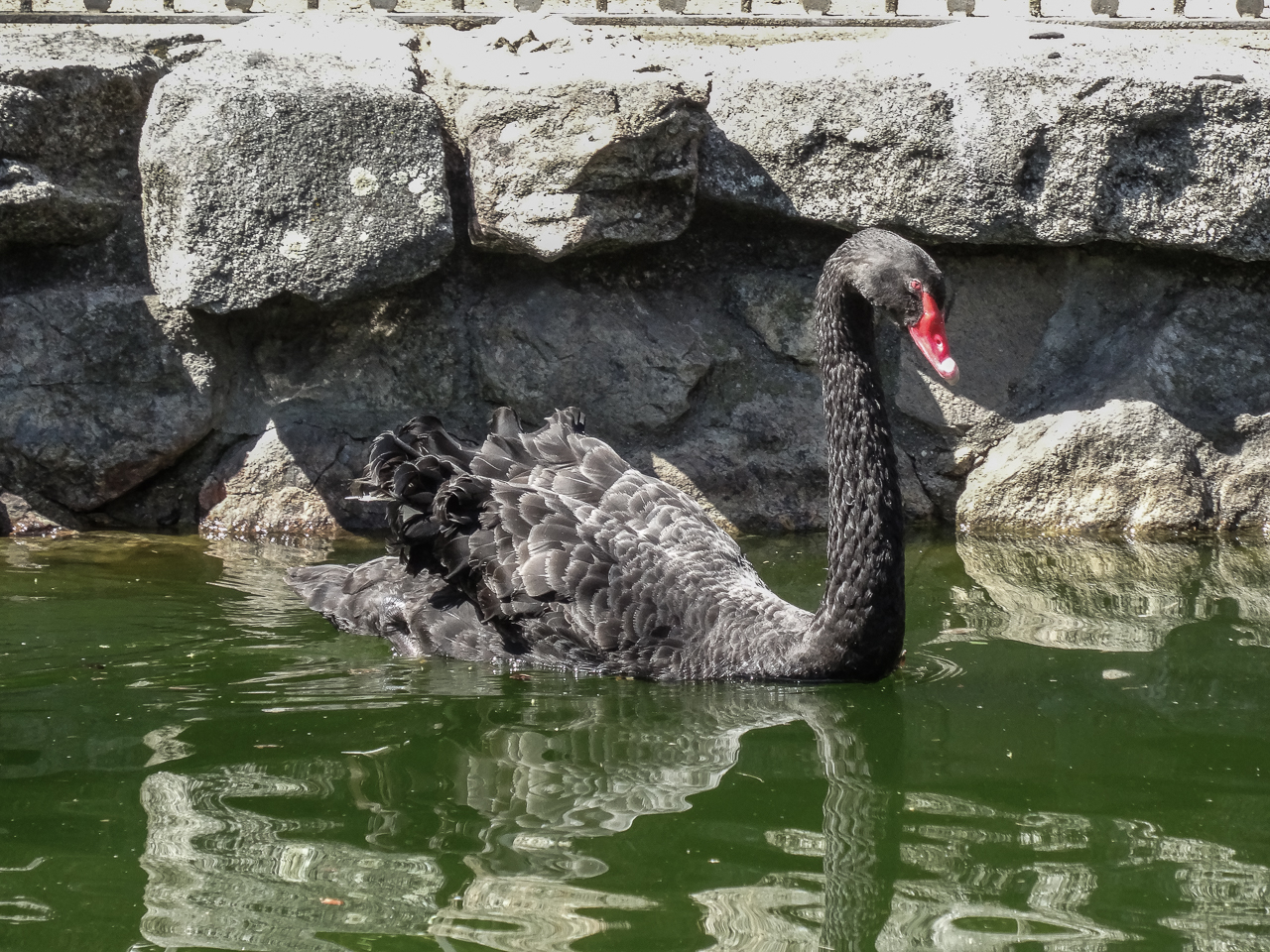 It was a long walk around, diverted in places due to the security concerns of the palace above, but it was so pleasant that being sent down an alternative path really didn’t matter. Before leaving, we tried to visit the carriage museum (having stumbled upon a royal carriage out for morning practice on the way in) but it was closed. The highlight of that diversion was a magnificent Black Swan paddling around in a pool of green water, looking for a handout.