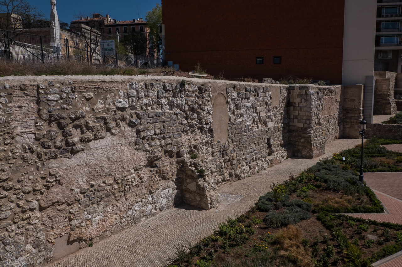 It’s an awful climb, going back and forth and really steep, dealing with the attitude rise of the other streets in a far shorter distance than the way we came down. Honestly, it seems like it would never end, though we knew it would because we’d done it before. Last time, there was a whole lot of drug dealing going on. Men standing by the side of the street, cars stopping, things being exchanged, cars going on, men smiling as we walked by. Today, there was none of that, just municipal workers barreling down on city-owned bikes and the occasional rider climbing up. The only respite is a historical park on the right side displaying the one of the last remainders of the original city walls. Built by the Moors in the 9th century, they were faced with rocks and bricks and made to look impregnable. But behind the façade was a pile of loose stones and garbage. The expectation – the Reconquista Christians would ride up and say, “Man those look hard, let’s ride on and conquer some other Moors.” Apparently it worked for a while because Madrid wasn’t liberated until 1085.