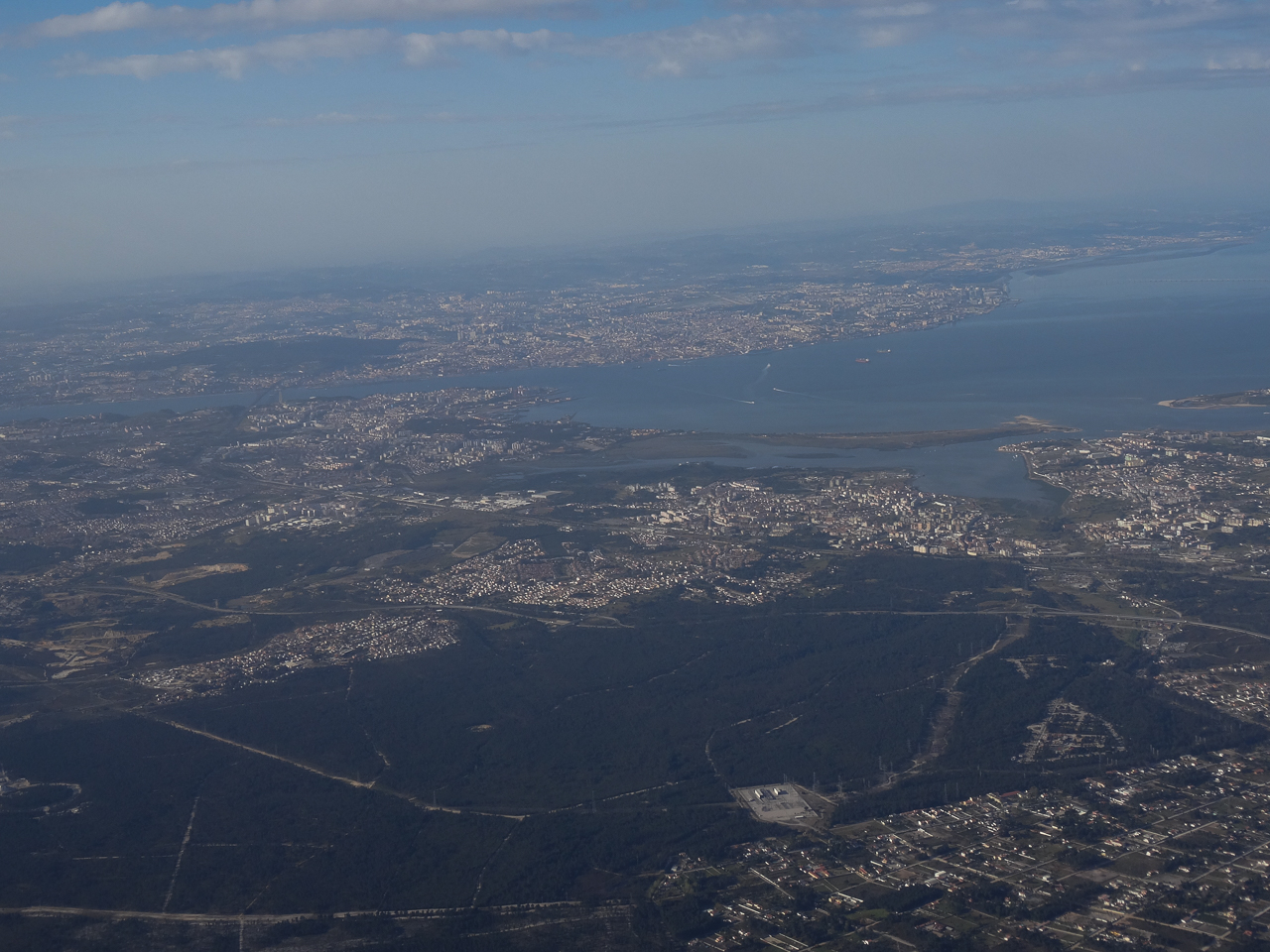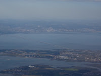 Anyway, it was a short uneventful flight, but it was very interesting coming in for a landing. As I mentioned, Lisbon is a new one for us so the vista out the plane window was extraordinary – the huge estuary of the Tagus River, long, beautiful bridges from the city to the peninsula, an ocean beach that went on for as far as I could see and thousands of red-tile roofed buildings hugging the water. In the late afternoon light, quite extraordinary and very beautiful.