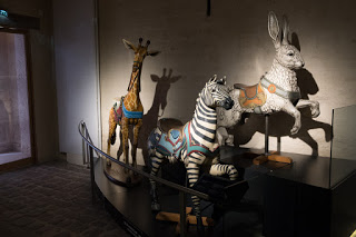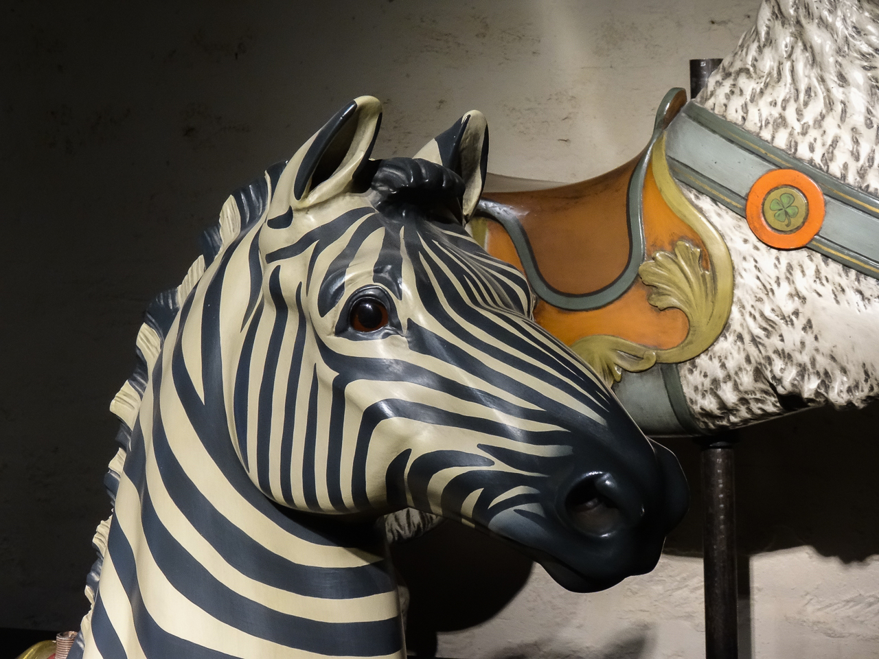 My favorite room came just at the end – a collection of carousel horses, nicely displayed in two groups and accompanied by the zither rendition of the “Theme from the Third Man.”