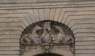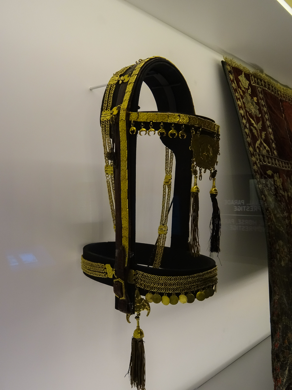 We had some time to kill so we had a nice little quiche in the museum café and then sat and watched some horses being worked in an arena just outside the museum. Framed by the huge buff limestone walls and backed up by two enormous bronze horse heads, it created a nice tableau in which to watch the horses going around and around.