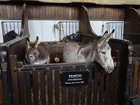 The show lasted 1:20. Each of the horses we had seen in the stable participated in a variety of short demonstrations. Riding, working in hand, working on the line and working free. The best two acts were the three burros doing a routine with a handler, and one skit involving a Mini and a Welsh Pony doing dressage airs. Seeing a Mini doing leaps in the style of a Lipizzan warmed our hearts, a future challenge for MLW’s Mini-training program. Adding some flavor were a couple of demonstrations by an acrobat which gave the whole thing a Cirque du Soleil air. It was a fun show, and the audience loved it.